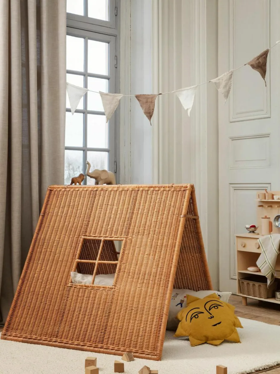Mit diesem ästhetischen und dekorativen Spielzelt kannst Du Deinen Kleinen ein Versteck bieten. Das geflochtene Rattan verleiht dem Kinderzimmer einen natürlichen Ausdruck. Im Zelt hat Dein Kind einen geschützten Ort zum Spielen, Lesen und Entspannen, während es durch kleine Fenster auch nach draußen blicken kann. Das praktische, flach verpackte Design ermöglicht eine einfache Aufbewahrung, wenn es nicht verwendet wird.“,“pdp_packing_dimensions“:“Paket: B 103 cm, L 9 cm, H 103 cm
