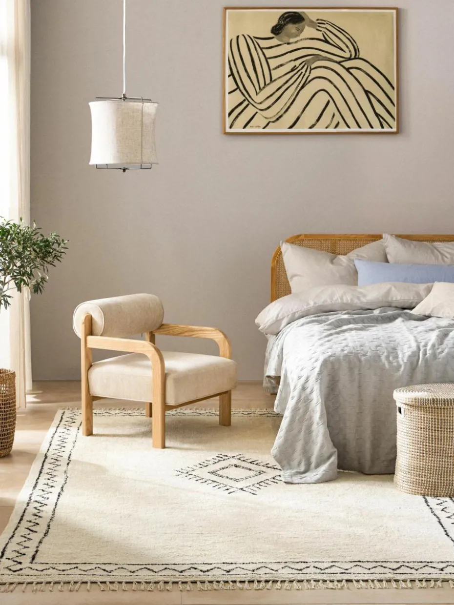 Dieser Teppich überzeugt mit weichem Flor sowie dem von traditionellen Berberteppichen inspirierten Design: feine Linien, zarte Farben und verspielte Fransen verleihen dem traditionellen Muster eine moderne Note. Mit seinem dezenten Look lässt sich dieser Teppich außerdem vielseitig zu unterschiedlichen Interior-Stilen kombinieren.“,“pdp_care_label“:“Kleinere Flecken schnellstmöglich mit einem feuchten Tuch abtupfen. Reiben vermeiden, um den Fleck nicht tiefer ins Gewebe einzuarbeiten