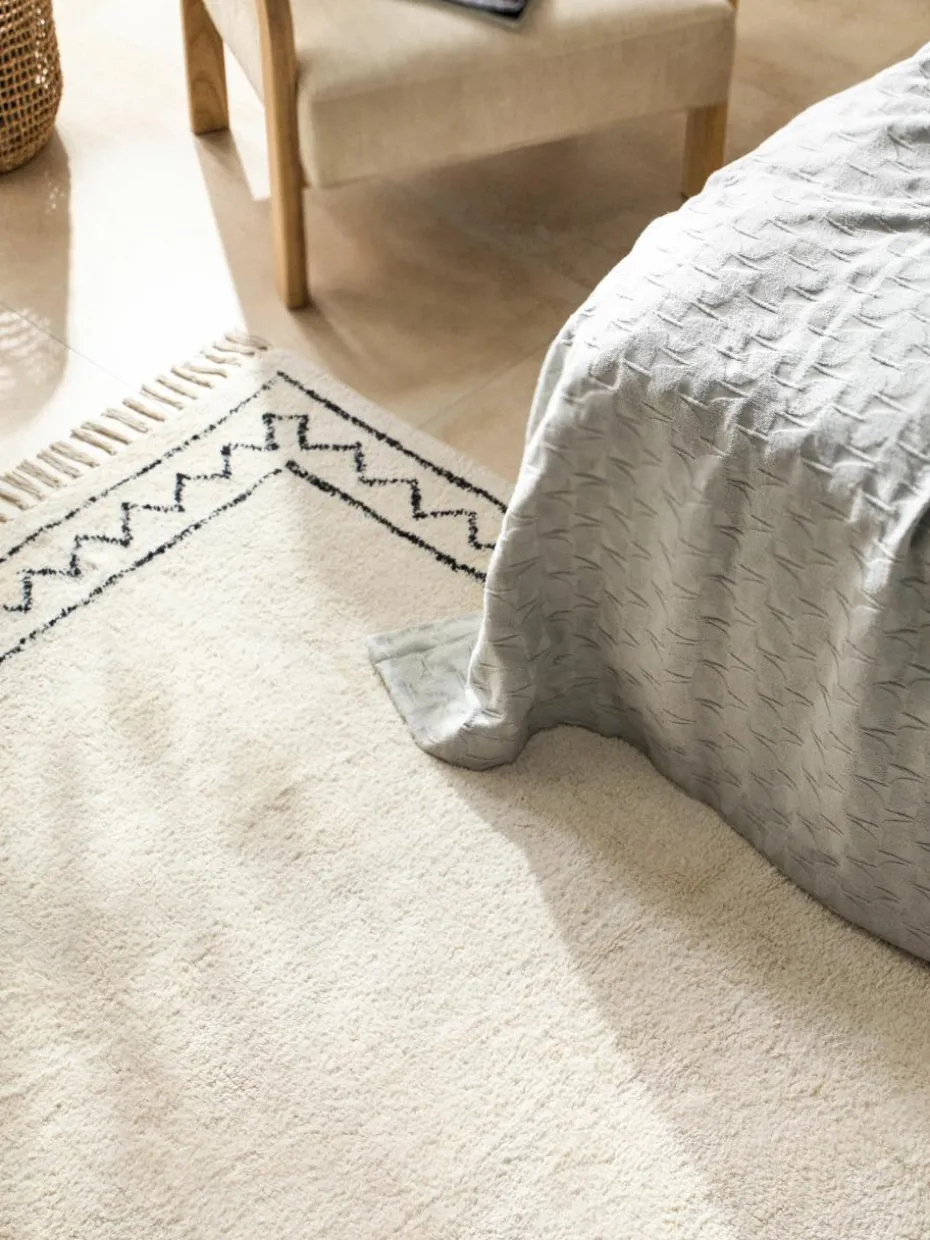 Handgetufteter Baumwollteppich Fionn mit Fransen