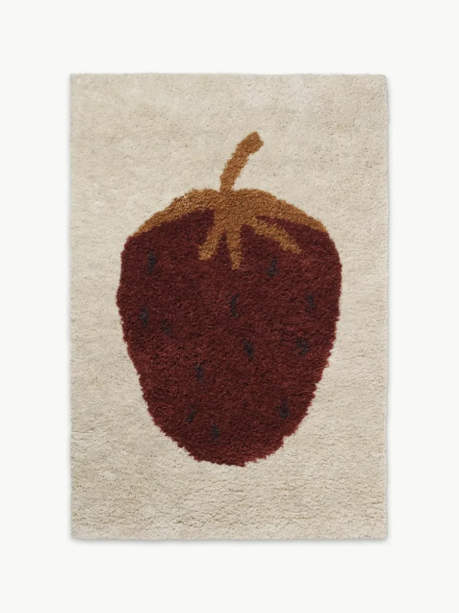 Dank der neuseeländischen Wolle ist dieser neue Erdbeer-Teppich aus der handgetufteten Fruiticana-Serie weicher als alle anderen mit hohem Flor und dichtem Gewebe. Der Teppich mit Erdbeer-Motiv kann in jedem Raum verwendet werden, um einen weichen und dekorativen Kontrast zu schaffen.“,“pdp_care_label“:“Kleinere Flecken schnellstmöglich mit einem feuchten Tuch abtupfen. Reiben vermeiden, um den Fleck nicht tiefer ins Gewebe einzuarbeiten.