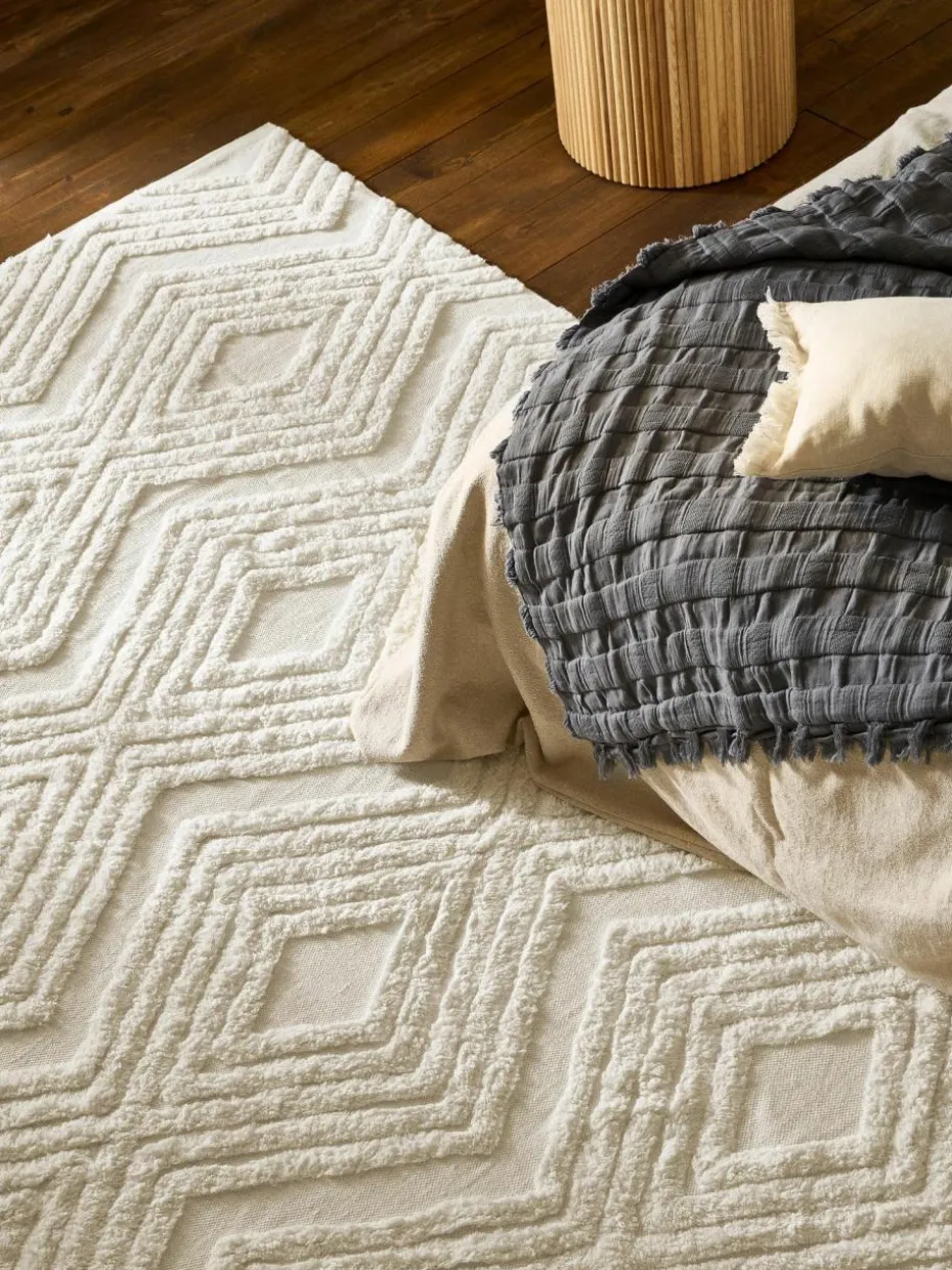 Handgewebter Baumwollteppich Ziggy mit erhabener Hoch-Tief-Struktur