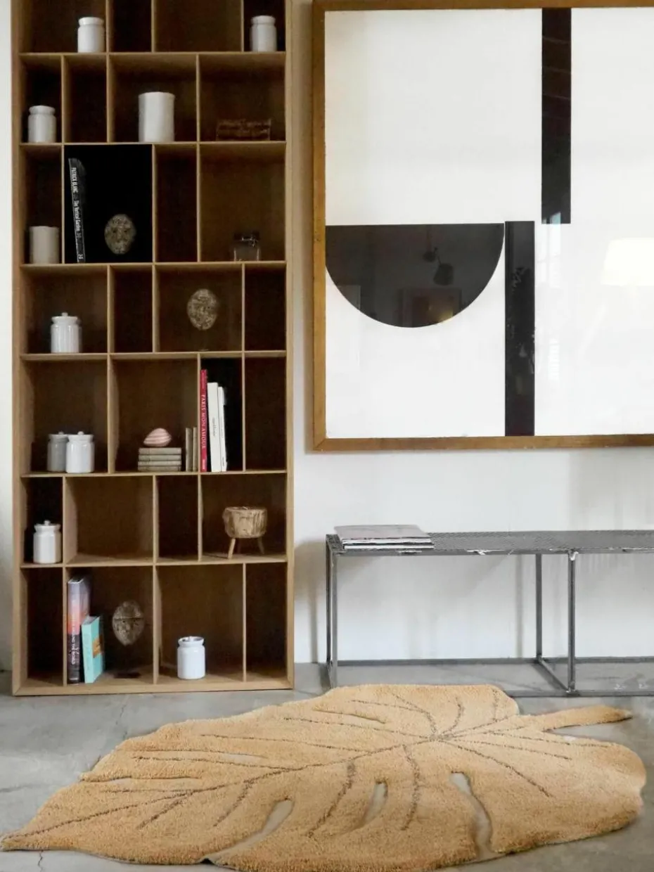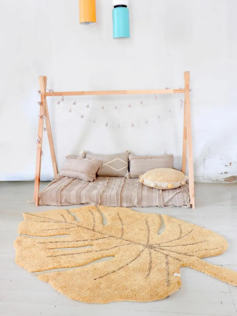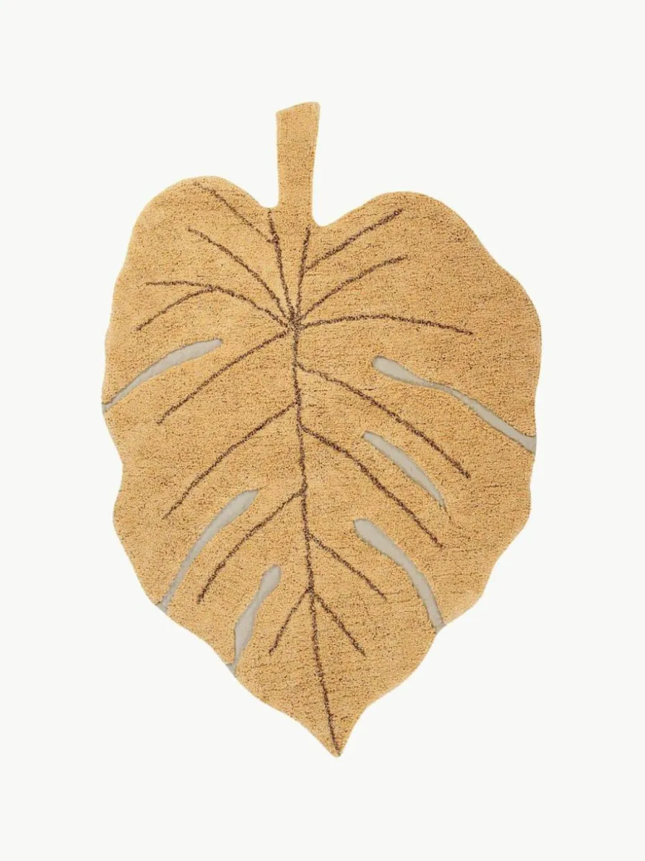 Handgewebter Kinderteppich Monstera mit Hoch-Tief-Effekt, waschbar