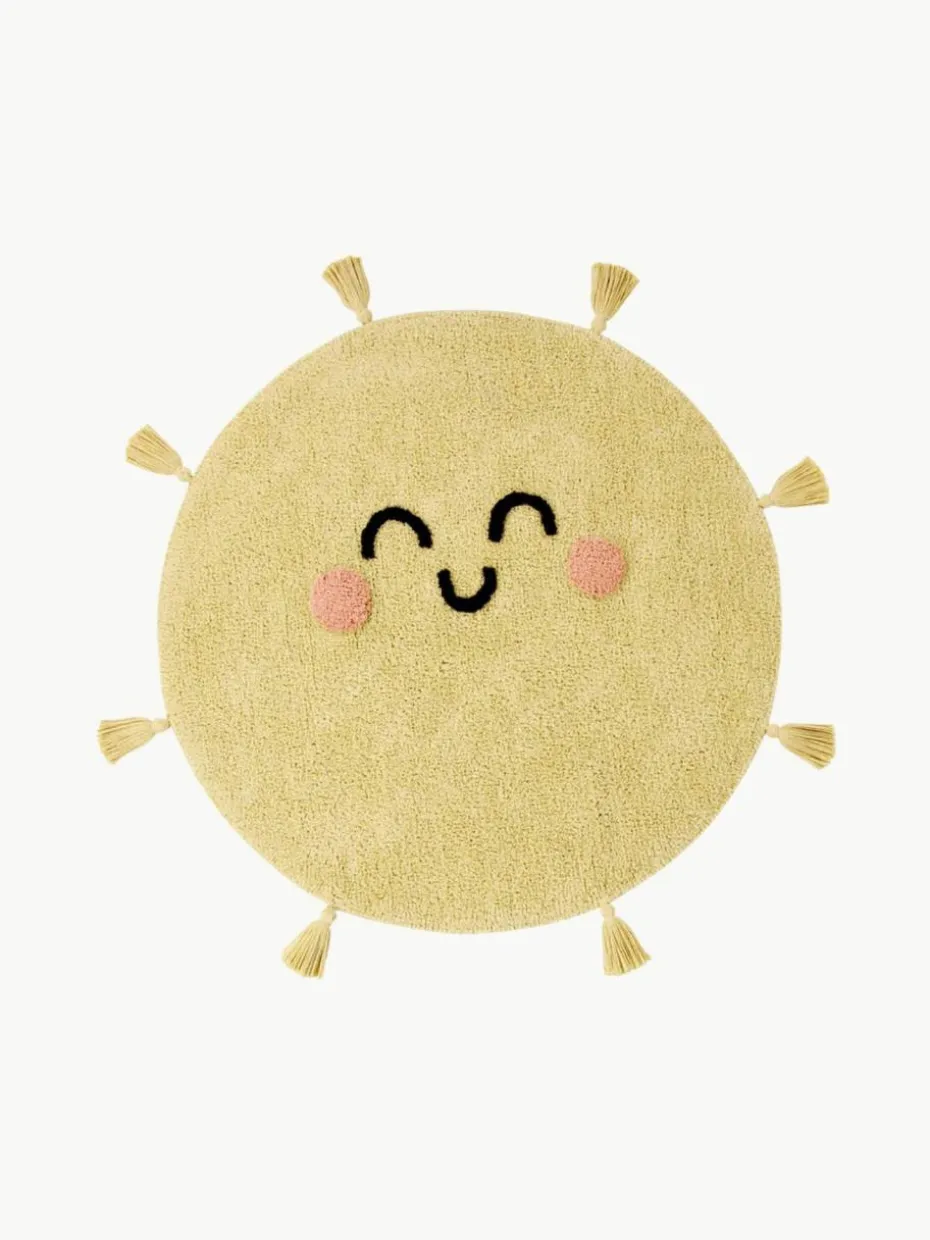 Handgewebter Kinderteppich You’re My Sunshine mit Quasten, waschbar
