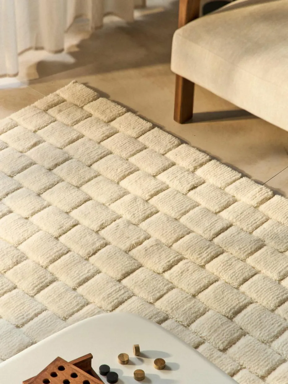 Handgewebter Wollteppich Adley mit Hoch-Tief-Struktur