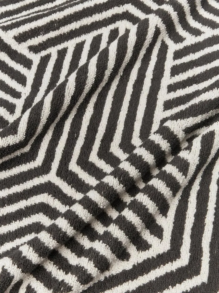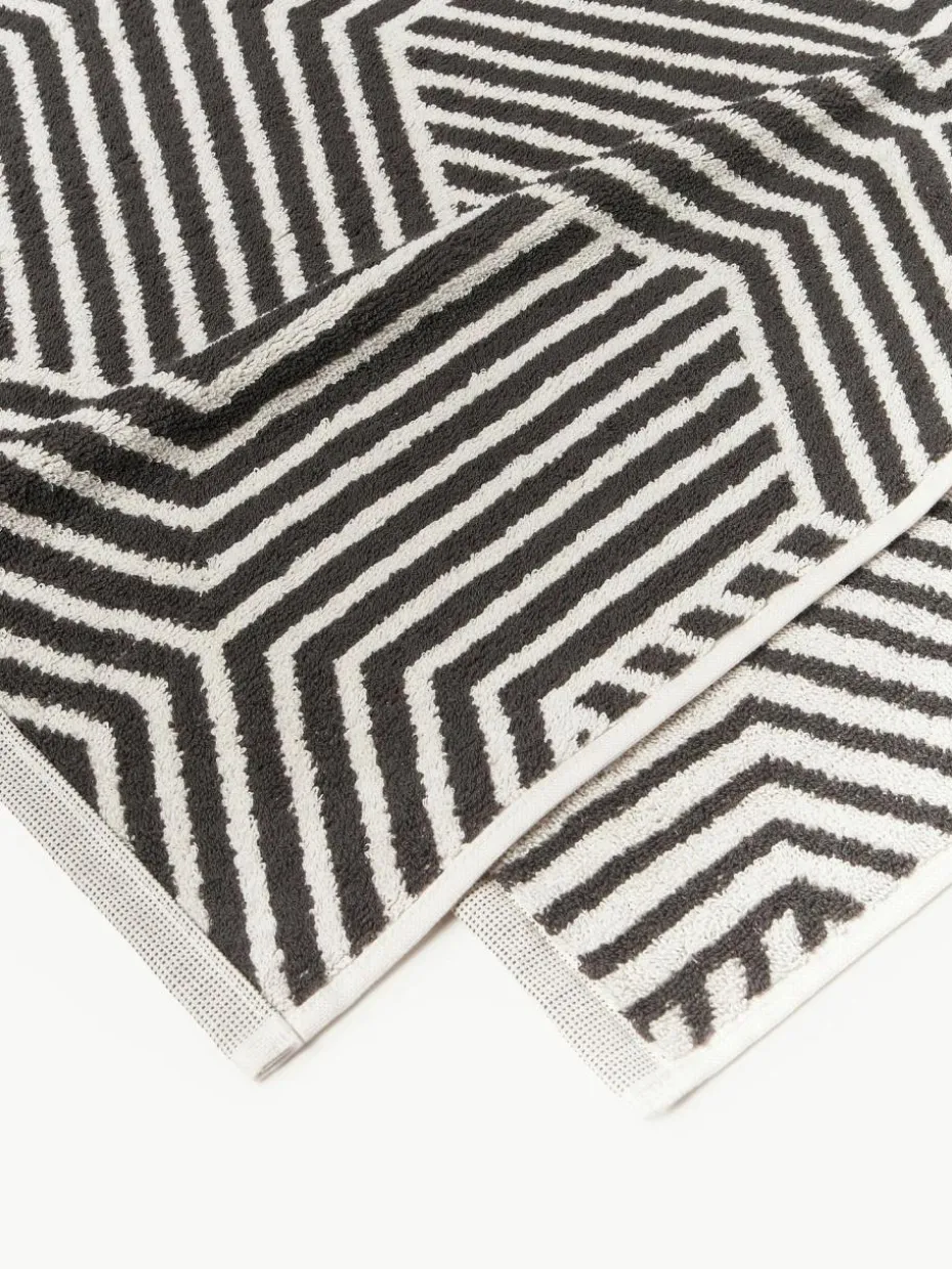 Handtücher mit grafischem Muster verfügen über eine Aufhängeschlaufe und wurden in Portugal gefertigt.