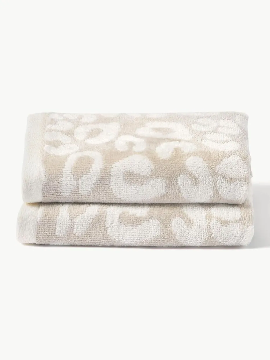 Diese Gästehandtücher verfügen über Aufhängeschlaufen und wurden in Portugal gefertigt.