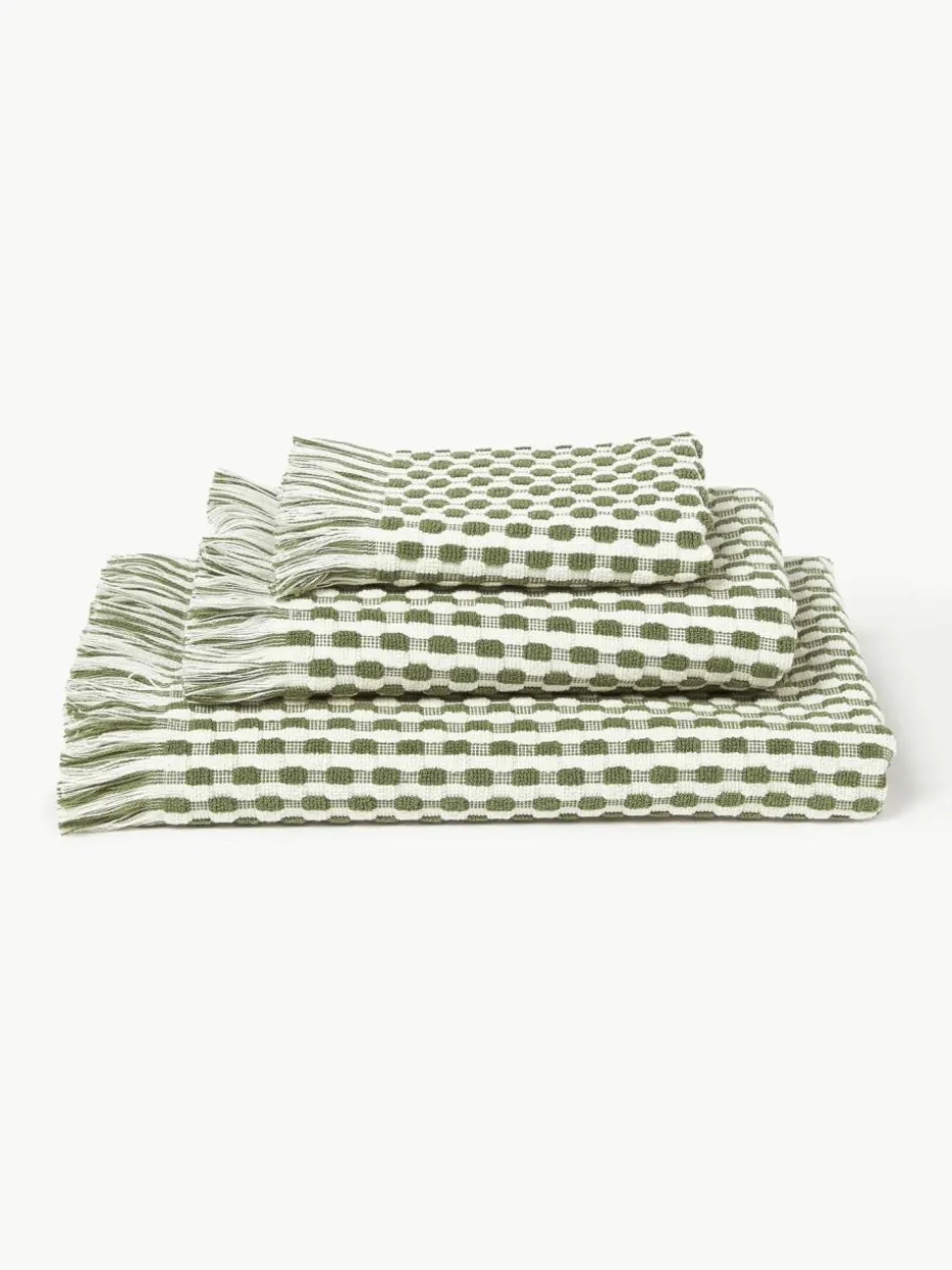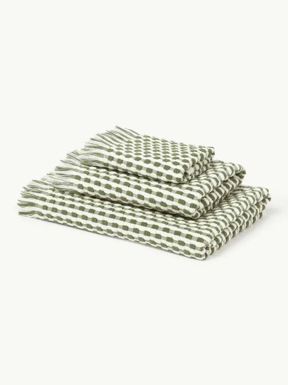 Kuschlige Handtücher mit einzigartigem strukturiertem Muster und dekorativen Fransen – das ist JUNIPER. Einfach ideal, um in Deinem Badezimmer stilvolle Akzente zu setzen.