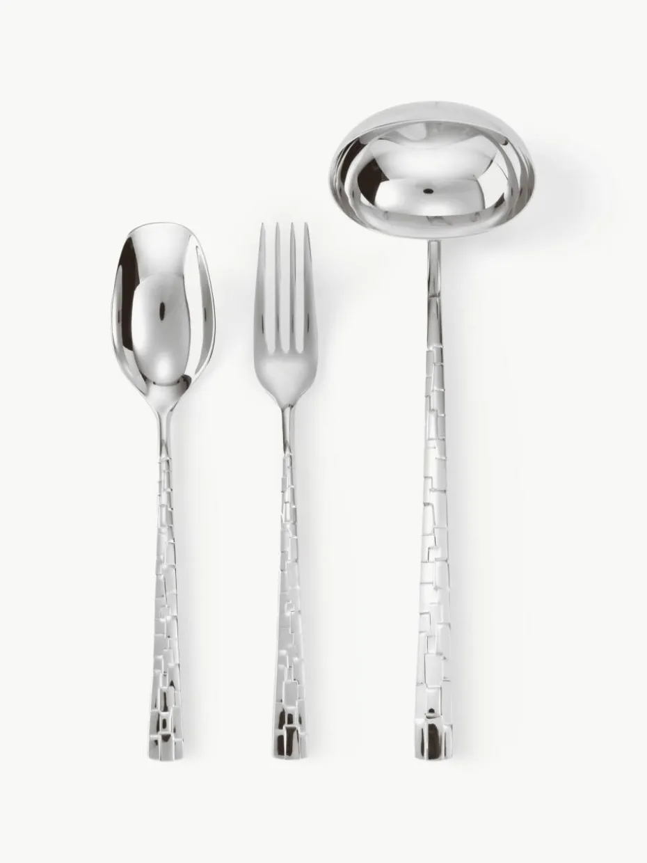 Hochglanzpoliertes Servierbesteck-Set Sculpt aus Edelstahl, 3-tlg.