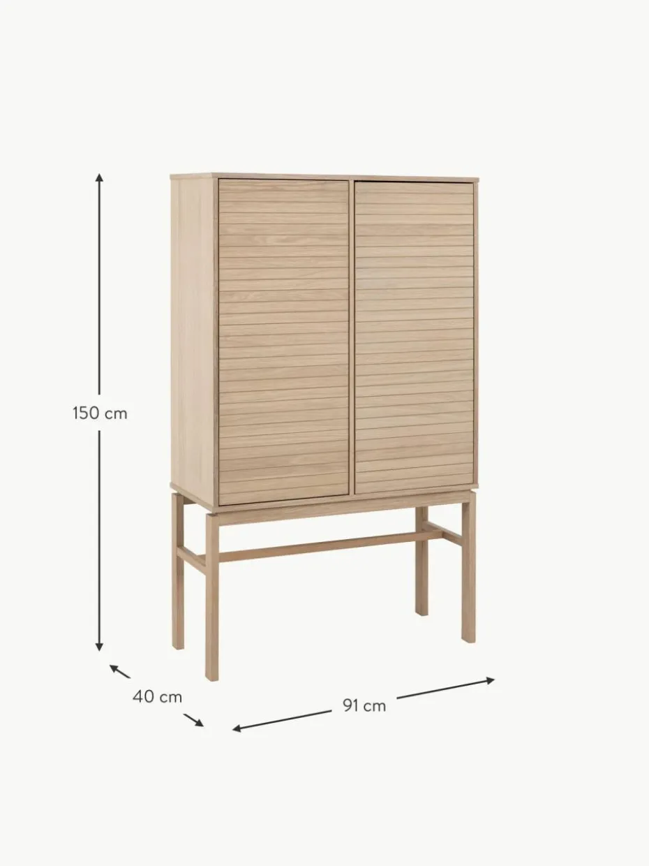 Dieses Highboard bietet sowohl Stauraum als auch ein harmonisches Design und ist eine perfekte Ergänzung für moderne und traditionelle Räume. Verstecke Deinen Krimskrams auf den verstellbaren Einlegeböden hinter den beiden Türen.