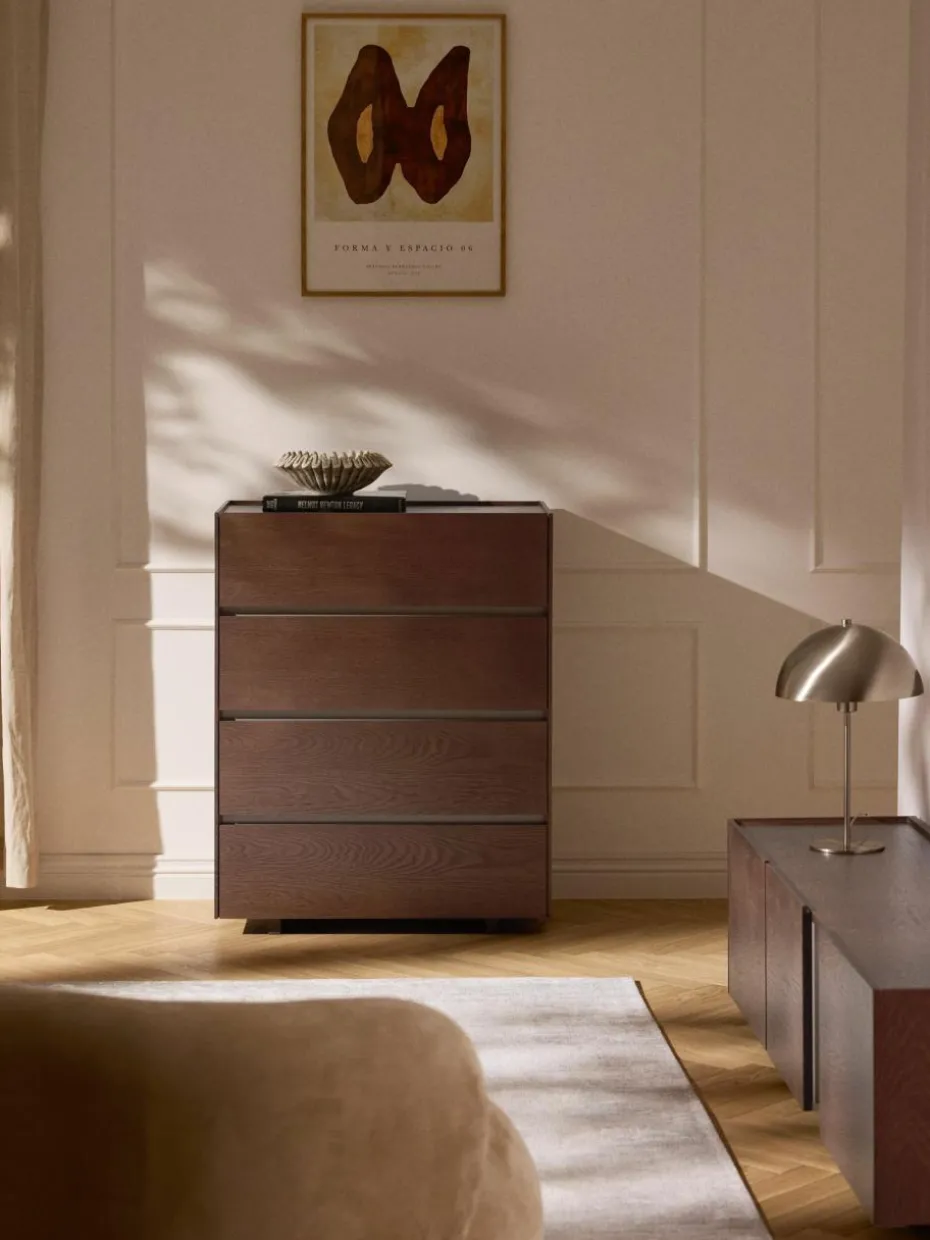 Das Produkt verfügt über vier Schubladen und wurde in Europa gefertigt.