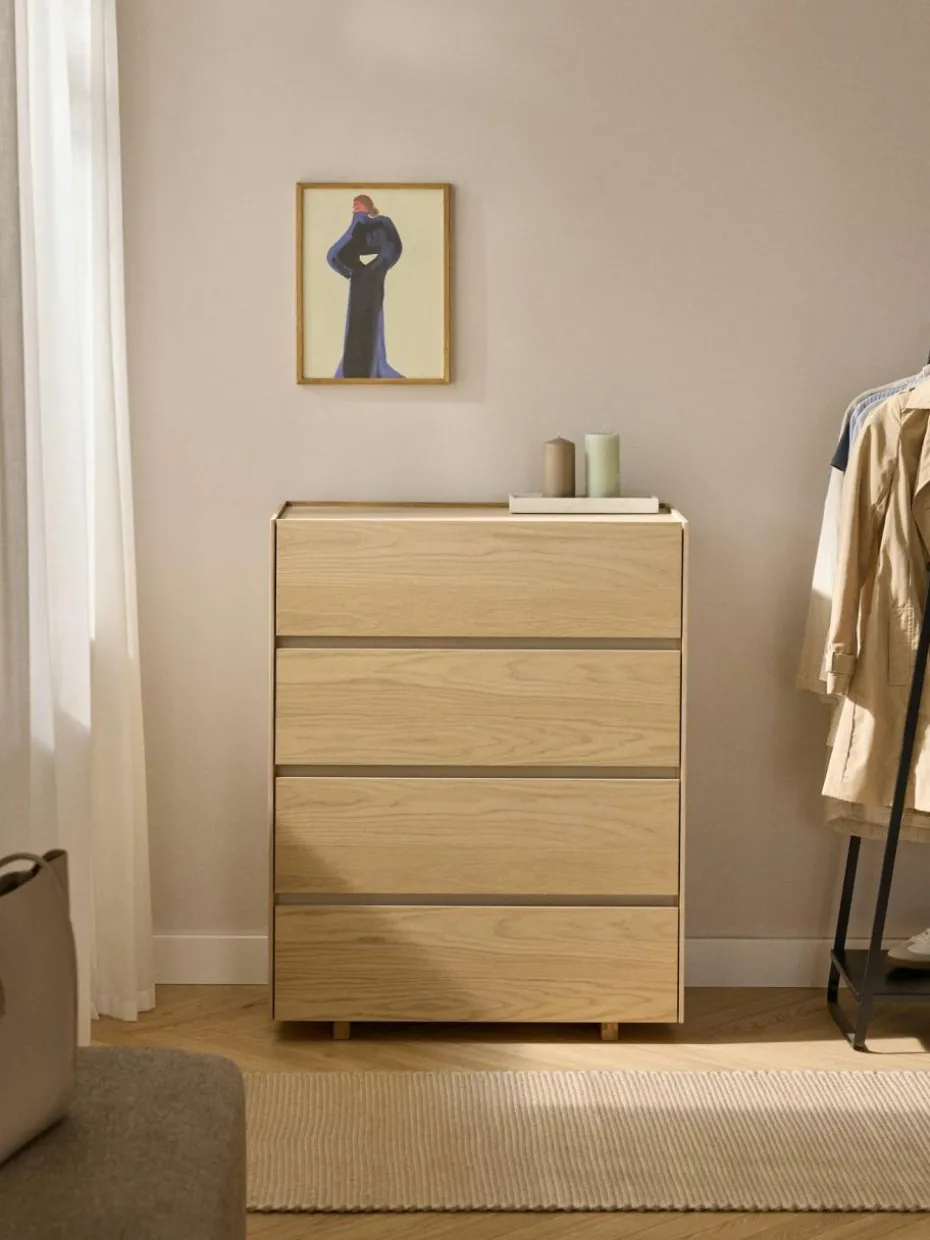 Das Produkt verfügt über vier Schubladen und wurde in Europa gefertigt.