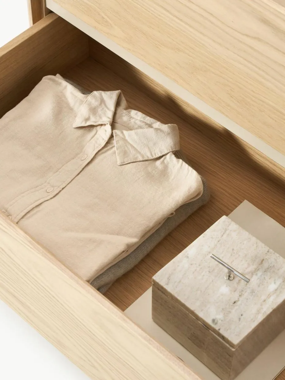 Die Schubladen verfügen über einen Soft-Close Mechanismus und lassen sich somit geräuschlos schließen.“,“pdp_care_label“:“Das Produkt wird platzsparend verpackt geliefert – nach Montage der Beine kann es sofort verwendet werden.