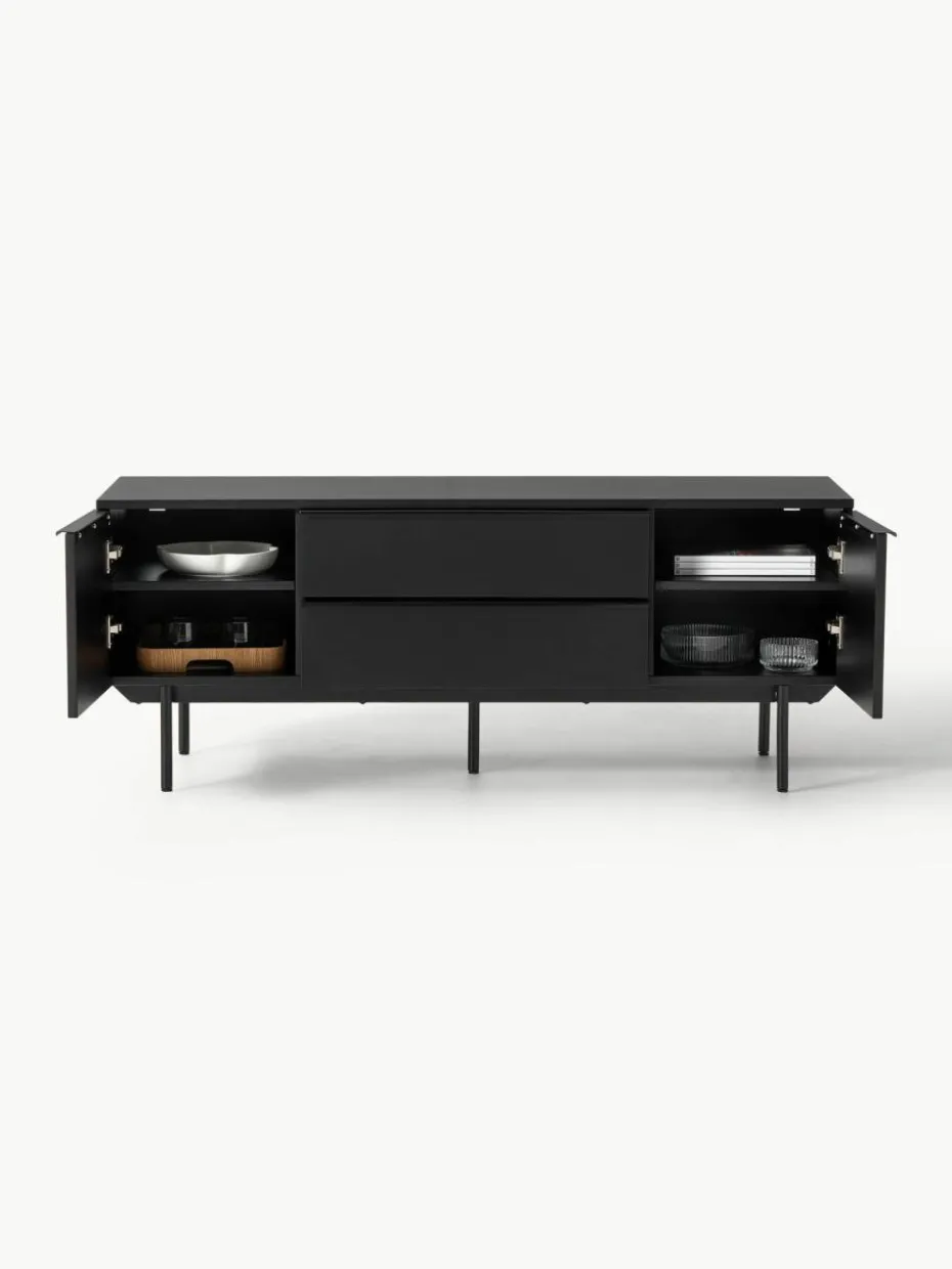 Die Schubladen und Türen verfügen über einen Soft-Close- sowie einen Push-To-Open-Mechanismus. Sie lassen sich somit geräuschlos schließen und verleihen Elona einen besonders puristischen und eleganten Look.“,“pdp_care_label“:“Das Produkt wird platzsparend verpackt geliefert und kann nach Montage der Beine sofort verwendet werden.