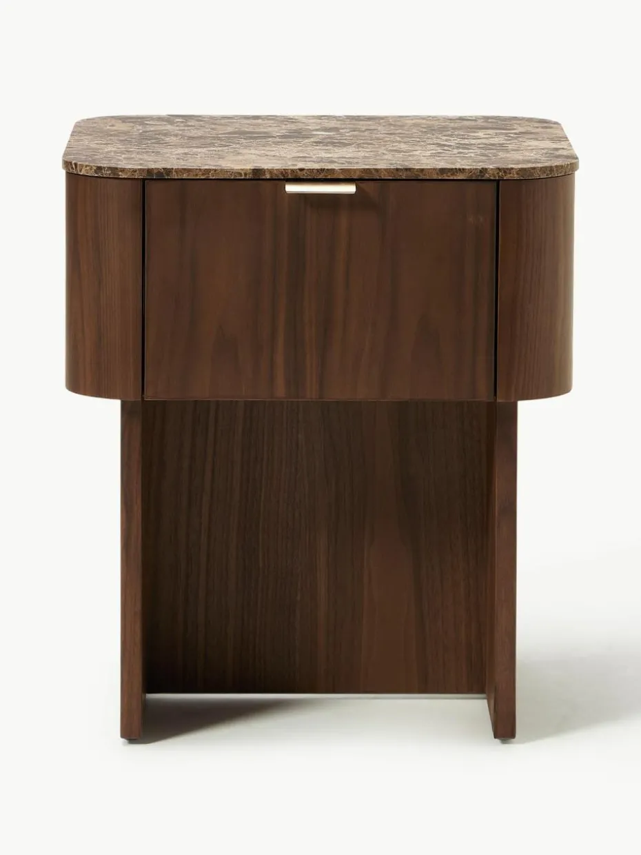 Der Nachttisch verfügt über eine Schublade.