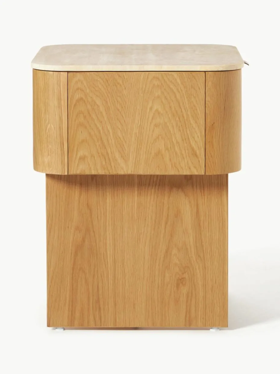 ZUMI ist eine gelungene Mischung aus Natürlichkeit und modernem Flair und ist dabei in zwei Varianten erhältlich: mit einer eleganten Steinplatte oder ganz aus Holz. Beide Ausführungen unterstreichen den Retro-Look und machen ZUMI zeitlos. Der harmonische Mix aus Stein und Holz oder die reine Holzoptik bringen sowohl Naturverbundenheit als auch modernes Design in Dein Zuhause. Ideal für alle, die Funktionalität und stilvolles Design schätzen!