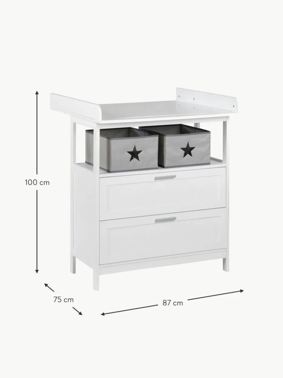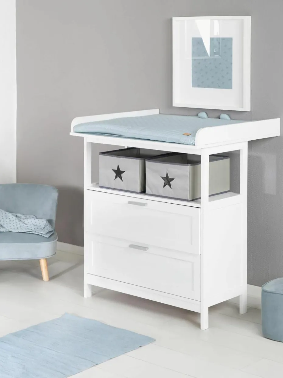 Die Wickelkommode verfügt über zwei Schubladen und ein Fach mit zwei Boxen.“,“pdp_care_label“:“Die Lieferung erfolgt inklusive Befestigungsmaterial.