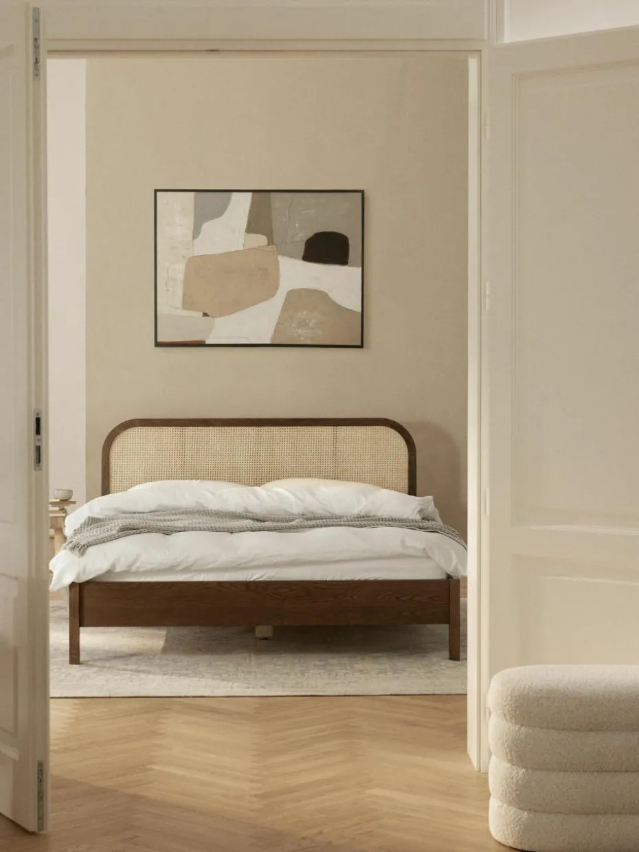Oh, diese Leichtigkeit! Kein Wunder, dass die Skandinavier helle Holzarten so lieben – Möbel aus diesem Material sind echte Stimmungsaufheller. Genau wie unser Bett JONES mit seinem stylischen Holzrahmen. Für das Kopfteil kannst Du zwischen trendigem Wiener Geflecht und einer gemütlichen Polsterung wählen und so den natürlichen Look ganz nach Deinem Geschmack abrunden.