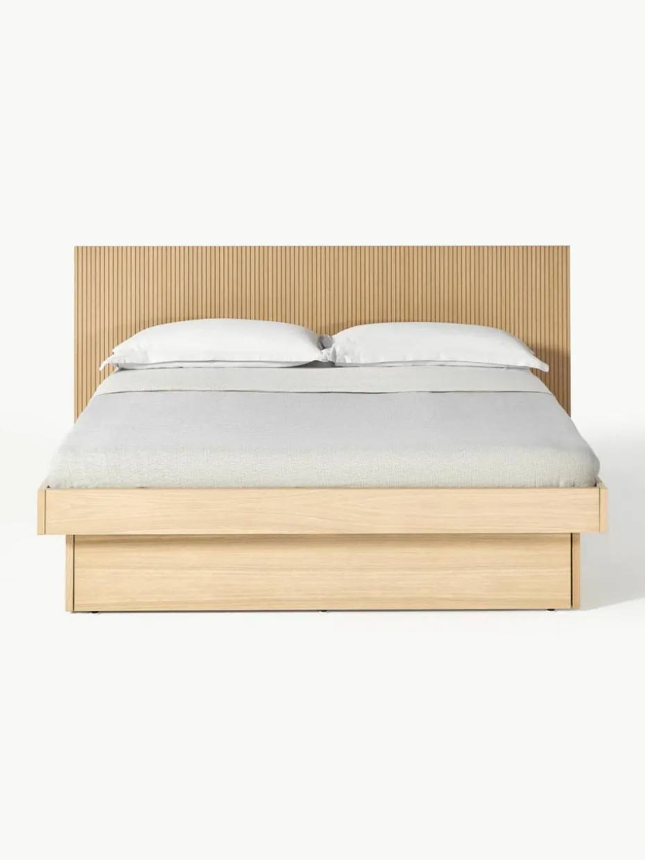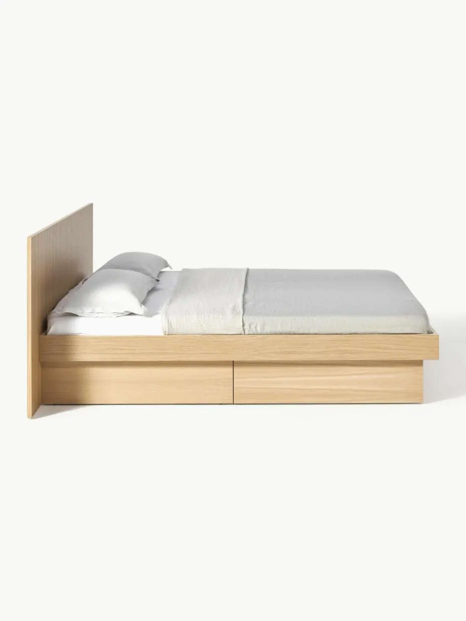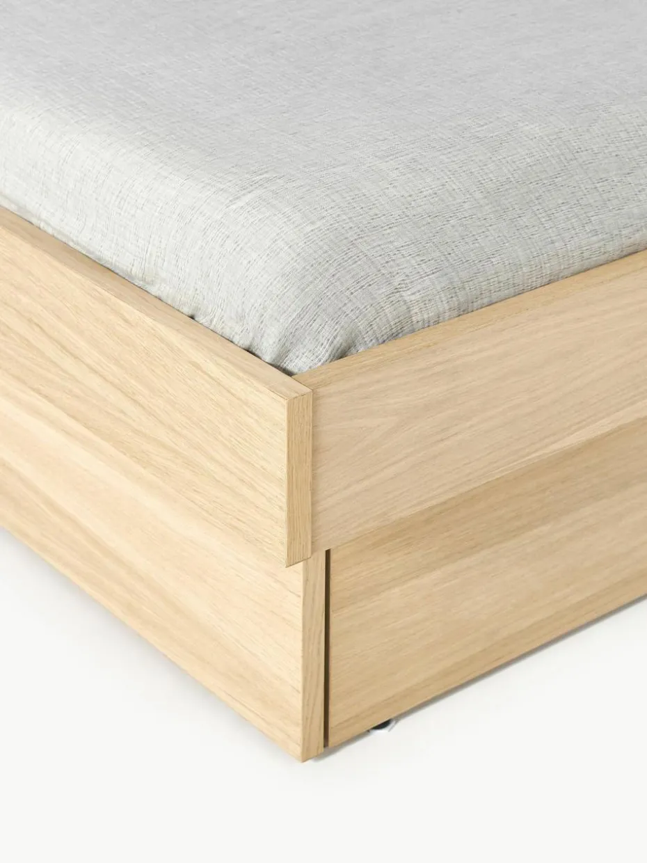 Das Holzbett verfügt über 2 Schubladen.