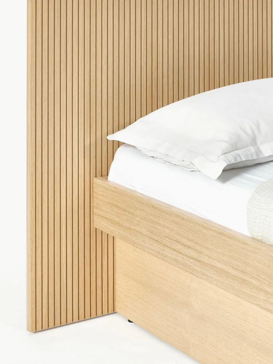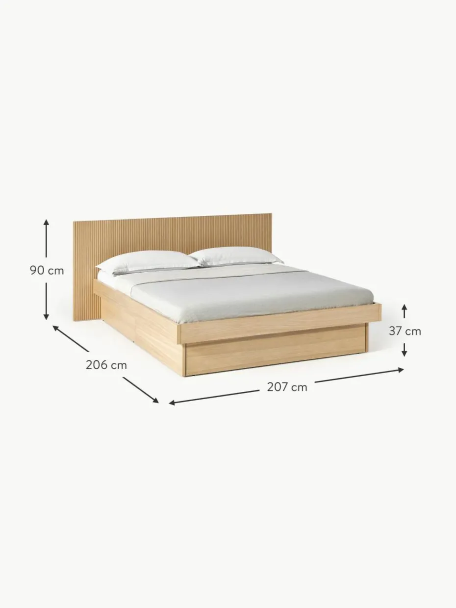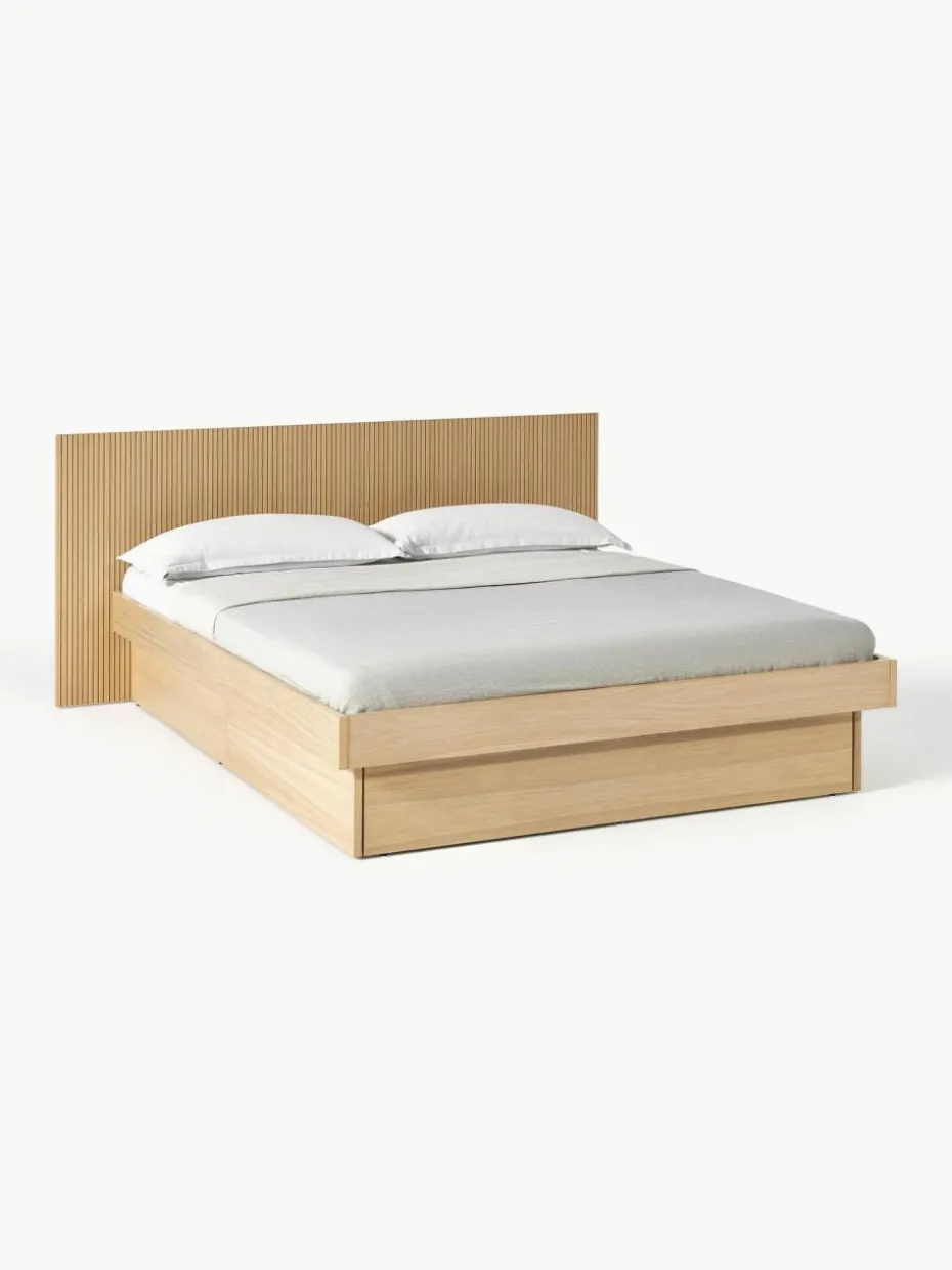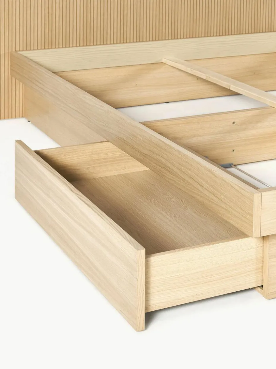 Das Holzbett verfügt über 2 Schubladen.