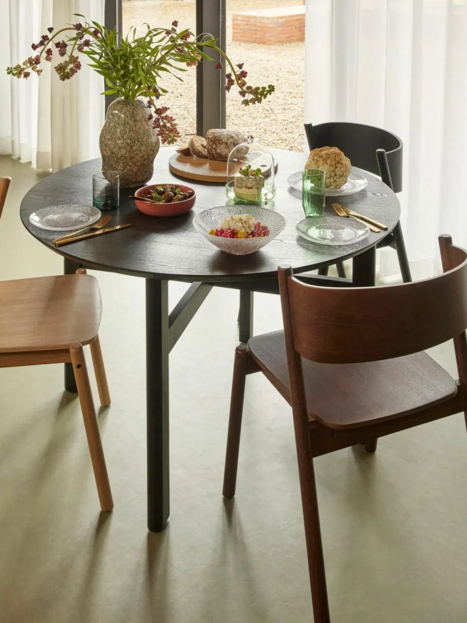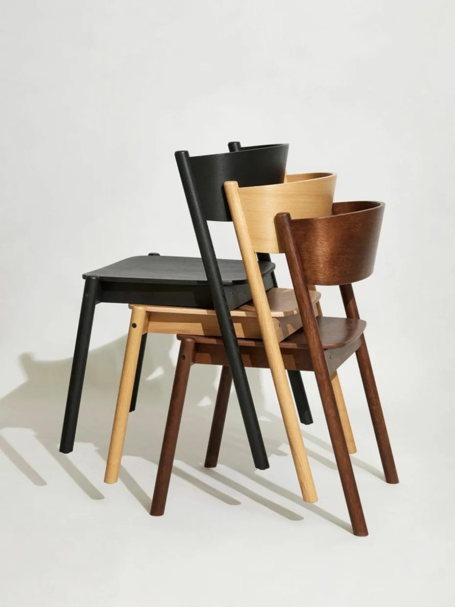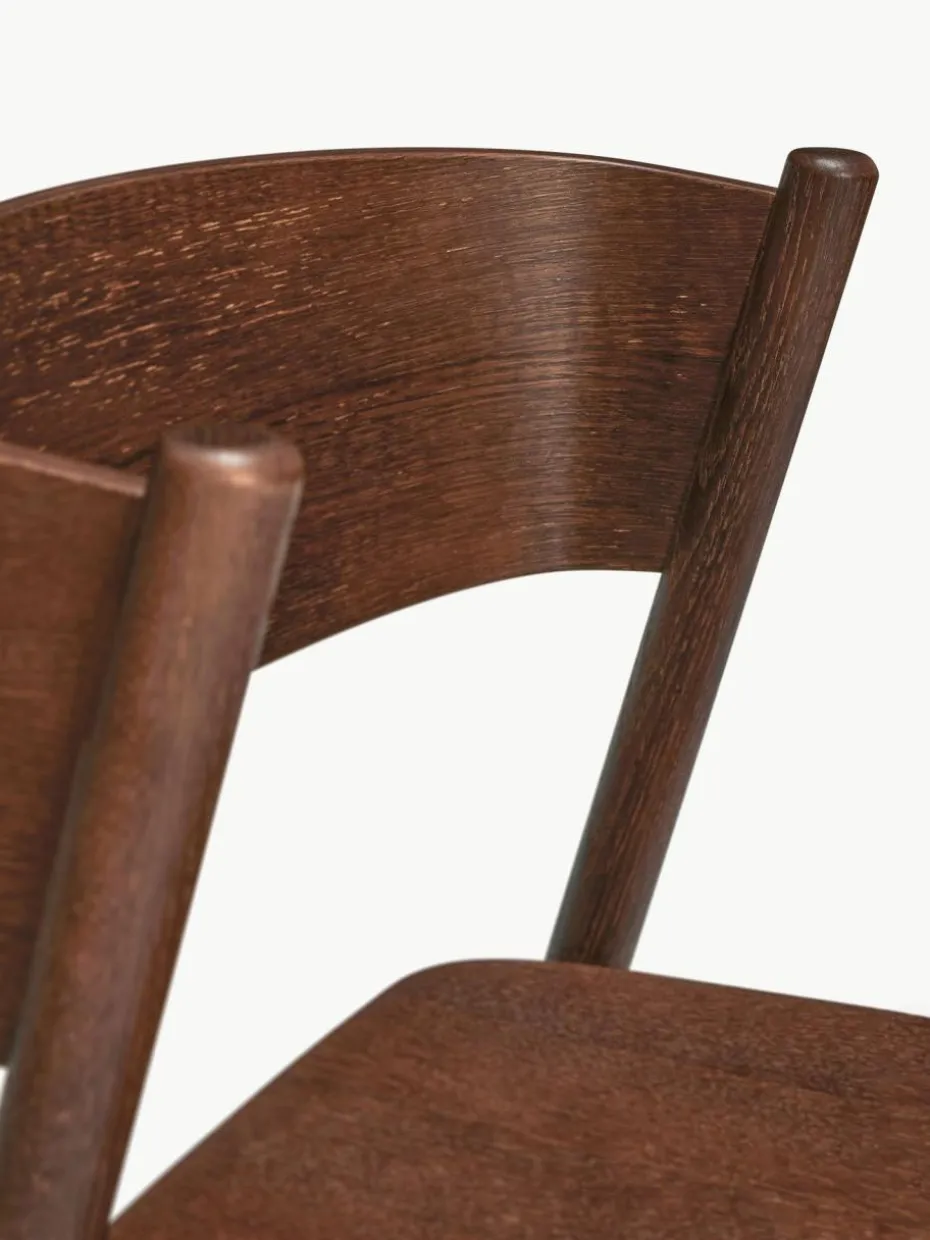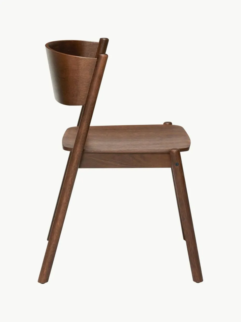 Dieser wunderbare Esszimmerstuhl hat seinen Ursprung in der dänischen Designtradition – und wir sind ganz verliebt! Die Wärme des Holzes verleiht der minimalistischen und klassischen Form Sanftheit, und die charakteristische diagonale Linie dient als Verlängerung der hinteren Beine – daher auch der Name Oblique. Die kontrastierende, geschwungene Rückenlehne ist ein besonderes und komfortables Element, das auch bei längerem Sitzen maximalen Support bietet. Dieser Stuhl ist nicht nur zeitlos und langlebig, er lässt sich sogar stapeln