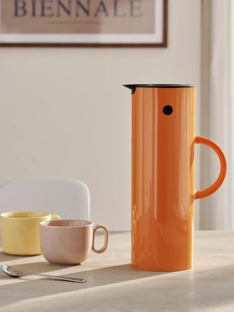 Die stilreine Isolierkanne ist die perfekte Kombination aus Form und Funktionalität und steht mittlerweile in Designmuseen auf der ganzen Welt. Innenseitig ist die EM77 mit einem Glaseinsatz versehen, der den Inhalt viele Stunden lang warm bzw. kalt hält. Die EM77 wurde entwickelt, um ein ganzes Leben lang zu halten, da alle Teile ausgetauscht werden können, falls sie einmal zu Bruch gehen. Das kommt auch der Umwelt zugute. Ebenso ist die Kanne mit einem einmaligen Kippverschluss und mit einem Picknick-Schraubdeckel gestaltet – perfekt für Ausflüge oder Picknicks im Freien.