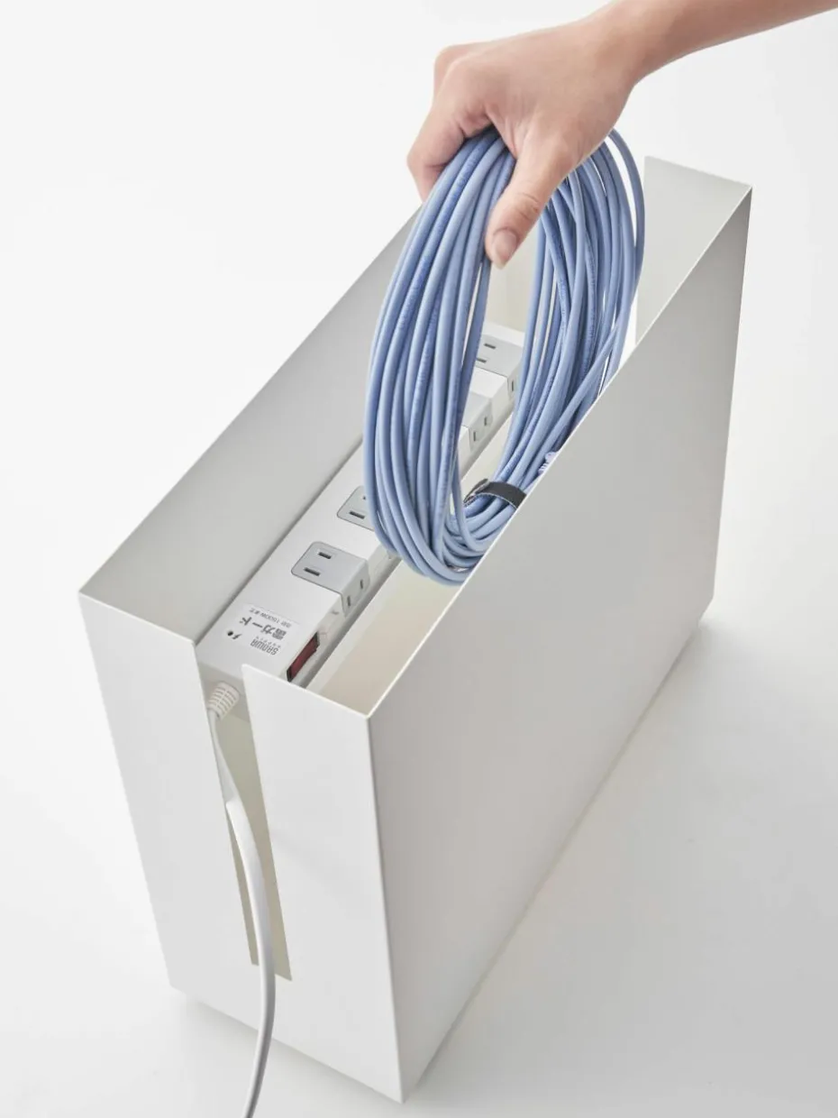 Die stylische Kabel-Box auf Rollen eignet sich optimal zum Verstecken eines Kabelsalates. Mithilfe des aufklappbaren Deckels verschwinden Mehrfachsteckdosen oder Kabel in der Box und können durch die Kabelöffnung verwendet werden.