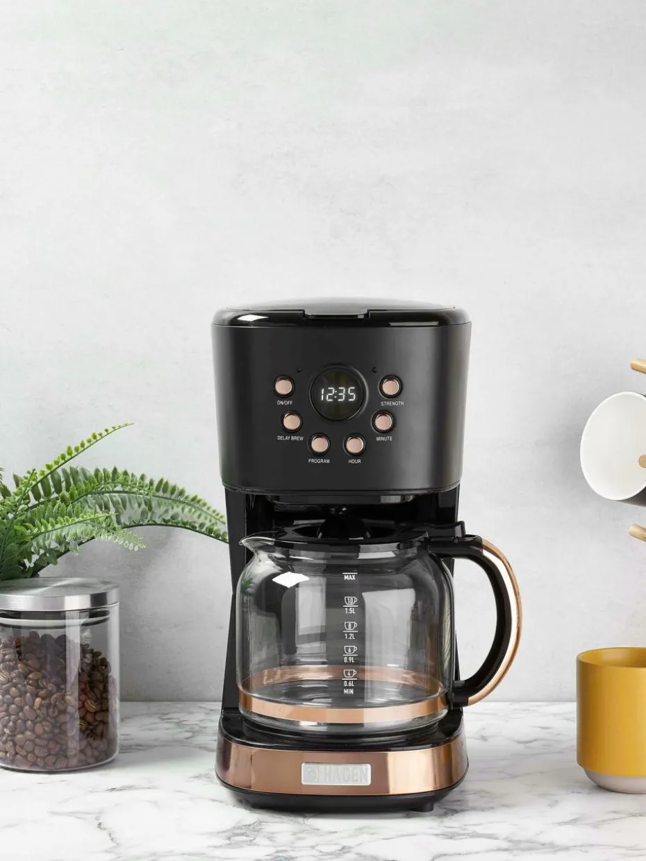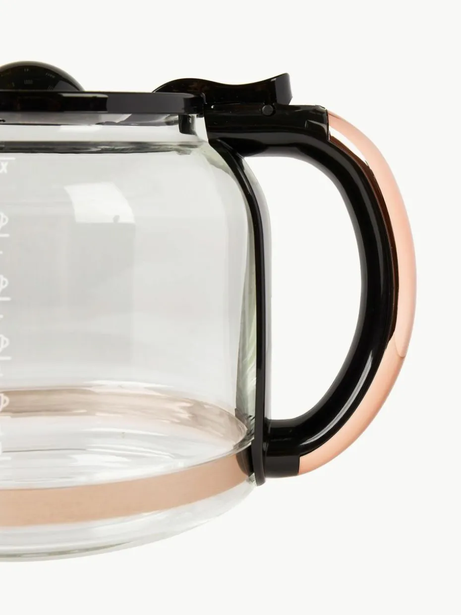 Mit einer Leistung von 900 Watt und einer Kapazität von zwölf Tassen ist die Kaffeemaschine ideal für den täglichen Gebrauch. Sie verfügt über eine Glaskanne und ein modernes, stilvolles Design. Der 1.8-Liter Wassertank bietet ausreichend Volumen, während der programmierbare Timer und die Stärkeneinstellung zusätzlichen Komfort bieten. Die Sicherheitsfunktionen umfassen eine automatische Abschaltung nach 120 Minuten. Zudem verfügt die Kaffeemaschine über ein Permanentfilter-System.“,“pdp_care_label“:“Kanne: Spülmaschinengeeignet