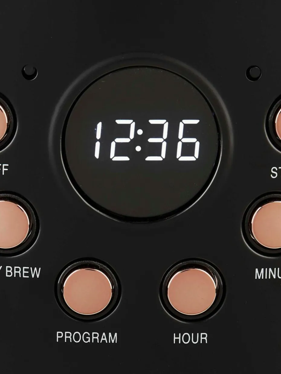 Die Kaffeemaschine bietet sechs Funktionen, darunter Ein/Aus, verzögertes Brühen, Programmierung, Stunden-, Minuten- und Stärkeneinstellung. Mit ihrem LCD-Display und der 30-Sekunden-Anti-Tropf-Funktion sorgt sie für sauberes und müheloses Kaffeekochen. Dank der Warmhaltefunktion bleibt der Kaffee länger heiß, sodass Du Dir jederzeit eine weitere Tasse einschenken kannst, wenn eine nicht ausreicht.