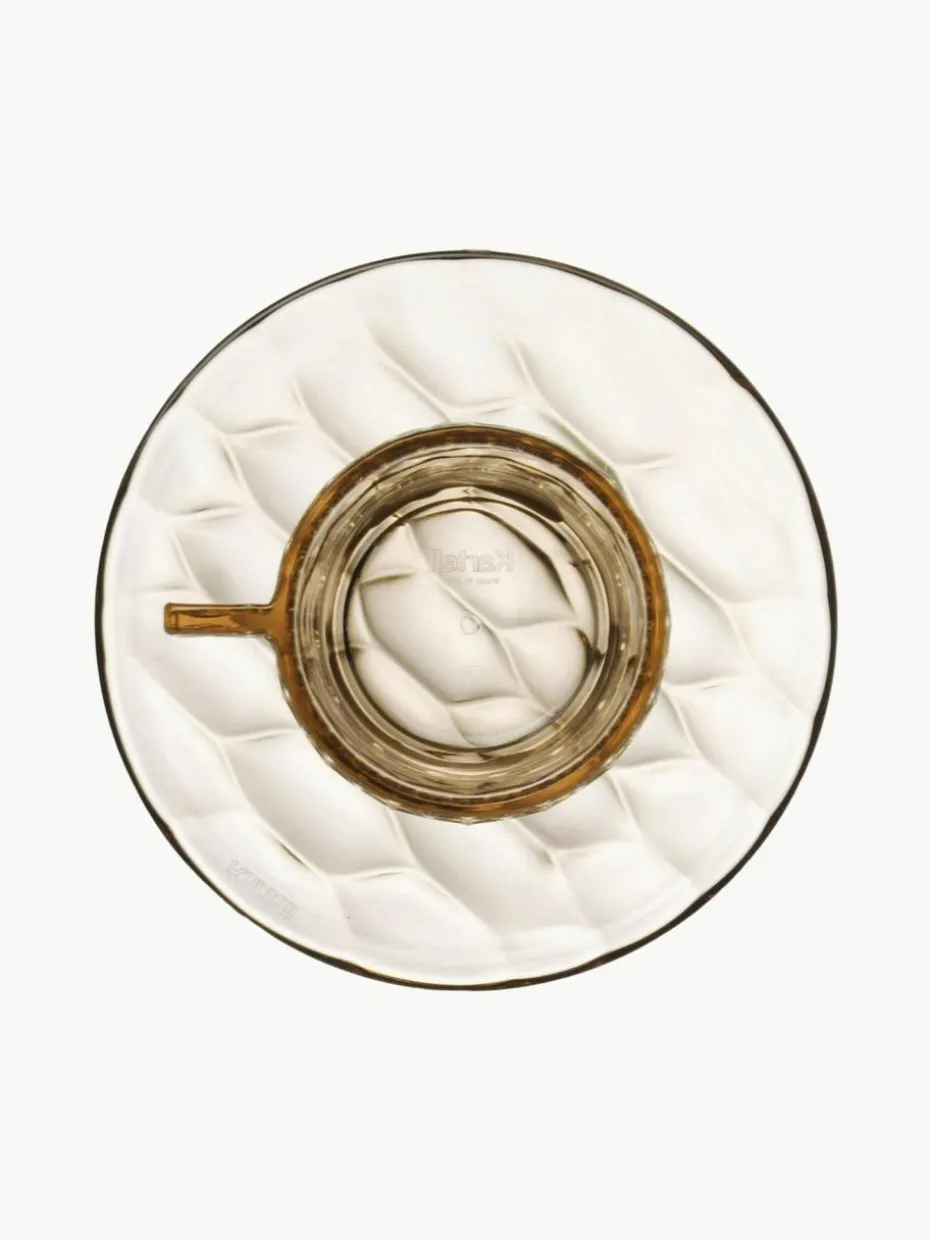 Jellies von Designerin Patricia Urquiola ist eine vielseitige Serie von Tellern, Tabletts, Gläsern, Schüsseln, Karaffen, Kaffeetassen und Zuckerdosen. Die Besonderheit der Serie ergibt sich aus der Tatsache, dass jedes Modell ein anderes Muster hat. Organische Formen lehnen sich an Aspikformen von früher an. Die Zusammenstellung von Tellern verschiedener Formen und Farben sorgt für ein einfallsreiches, aber gleichzeitig unaufdringliches, kreatives und edles Gesamtbild.