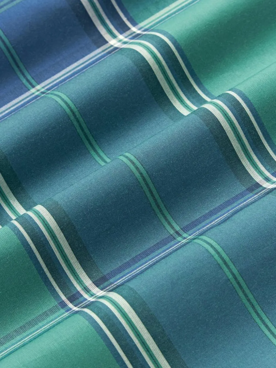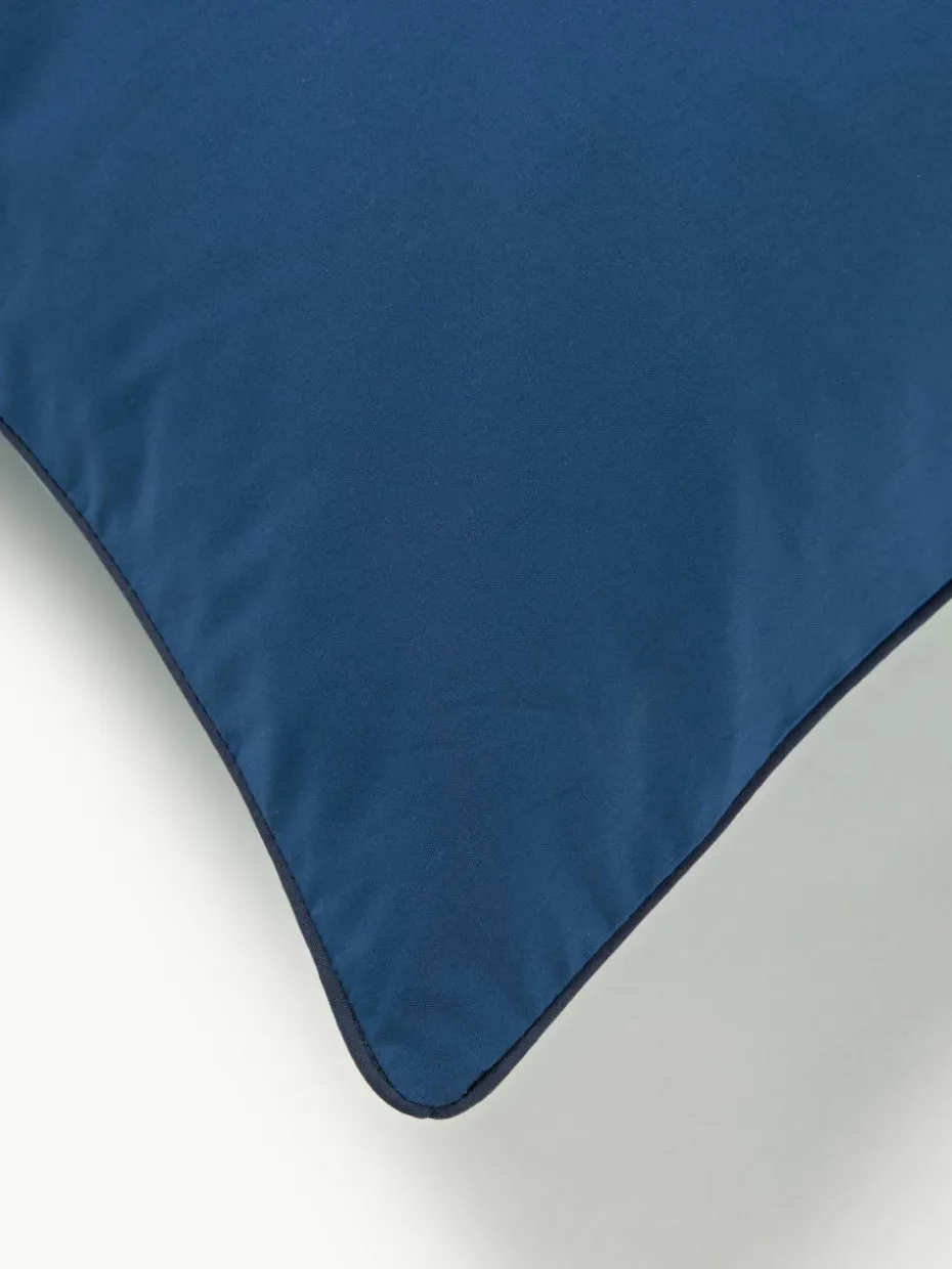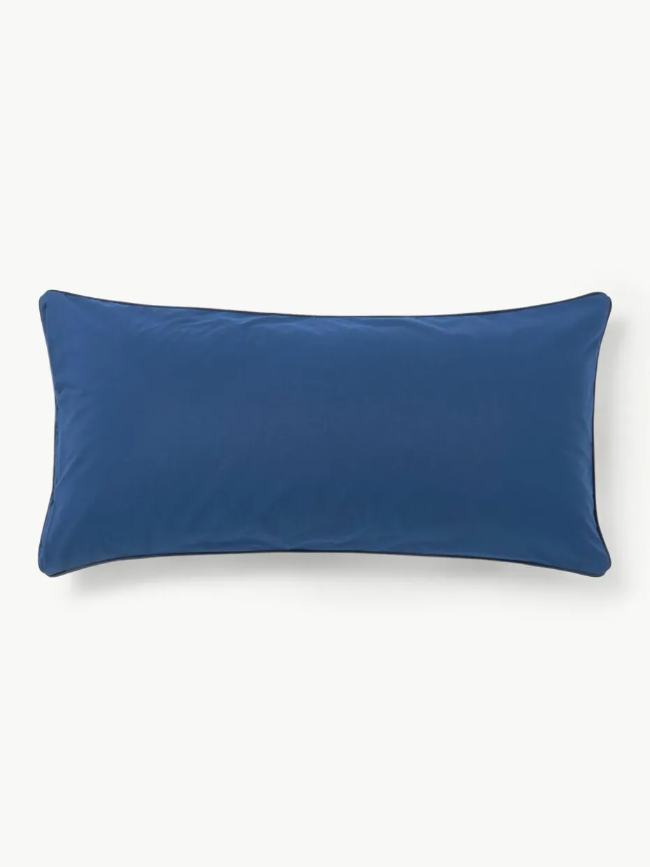 Der Baumwollperkal-Kopfkissenbezug mit karierter Vorderseite und unifarbener Rückseite verfügt über einen Knopfverschluss und wurde in Portugal gefertigt.