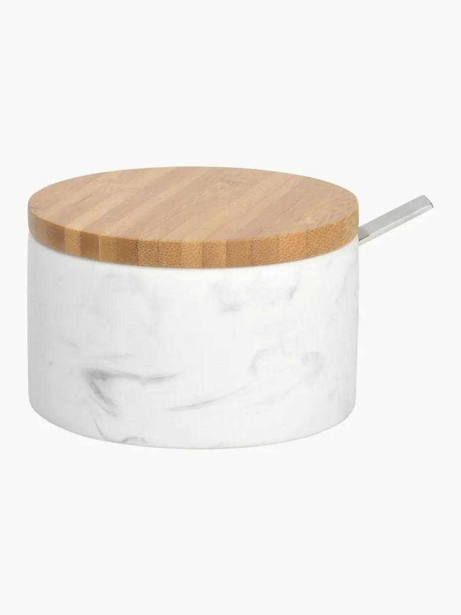 Zuckerdose in Marmor-Optik mit abnehmbarem Deckel und Löffel“,“pdp_care_label“:“Spülmaschinengeeignet