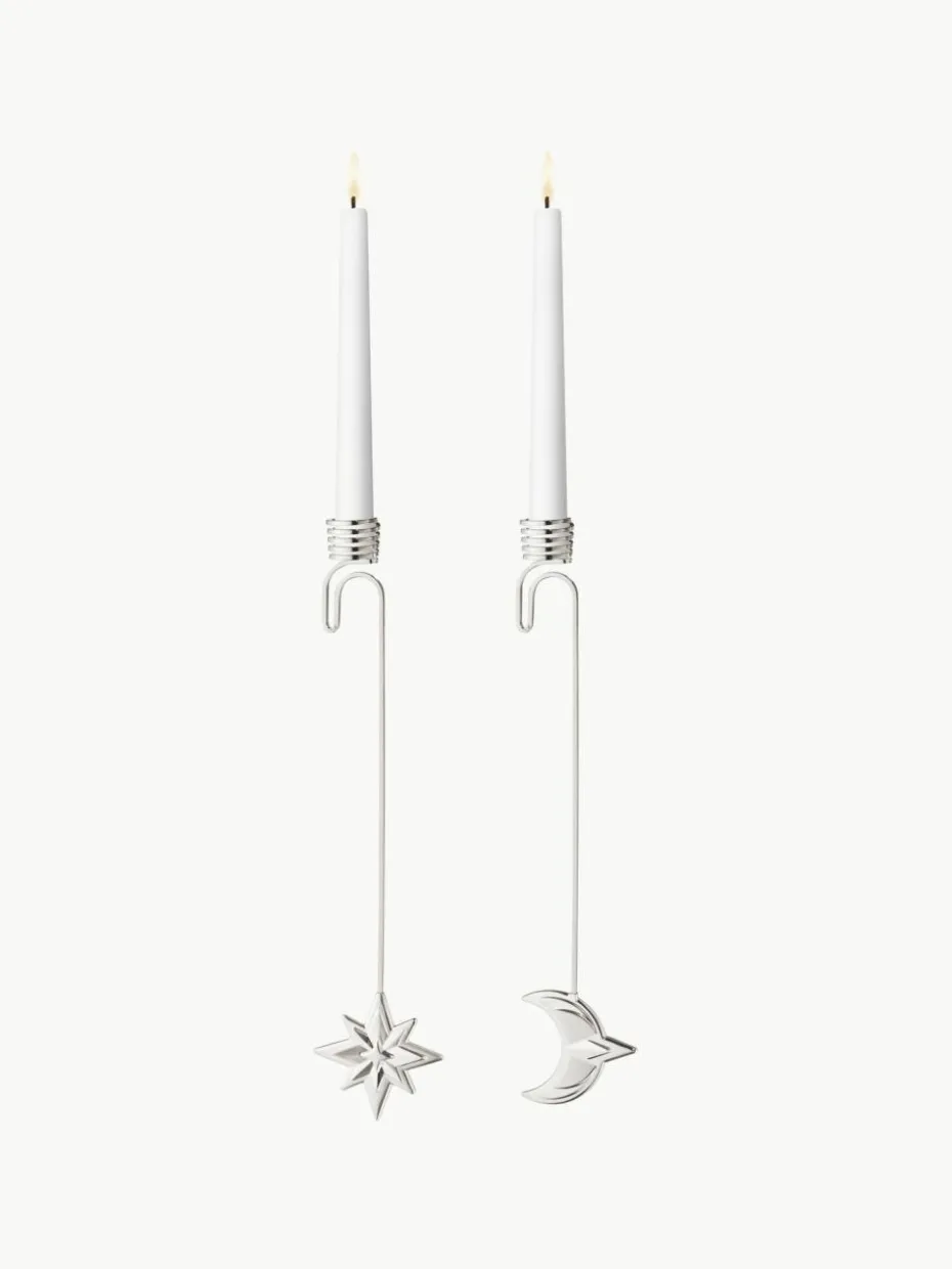 Diese Weihnachtsbaumkerzenhalter wurden von der langjährigen Mitarbeiterin Sanne Lund Traberg entworfen. Das Set besteht aus zwei verschiedenen Designs, eines mit Sternmotiv und das andere mit einer Mondsichel. Füge sie zu Deiner Weihnachtsdekoration hinzu, um einen gemütlichen Hauch von festlicher Eleganz zu verleihen.