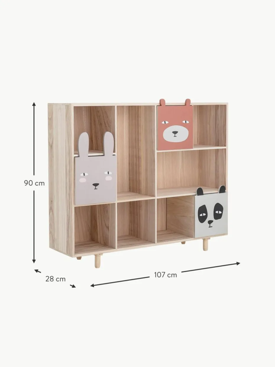 Bewahre Spielzeug, Bücher und andere Lieblingsdinge im Regal Calle von Bloomingville MINI auf. Das Regal ist aus Paulownia-Holz gefertigt und hat drei Schubladen mit niedlichen Tiergesichtern, wodurch es eine wundervolle Stimmung im Kinderzimmer verbreitet.“,“pdp_care_label“:“Das Regal wird platzsparend flach verpackt geliefert und benötigt nach dem Auspacken als Montageaufwand den Aufbau des kompletten Regals.