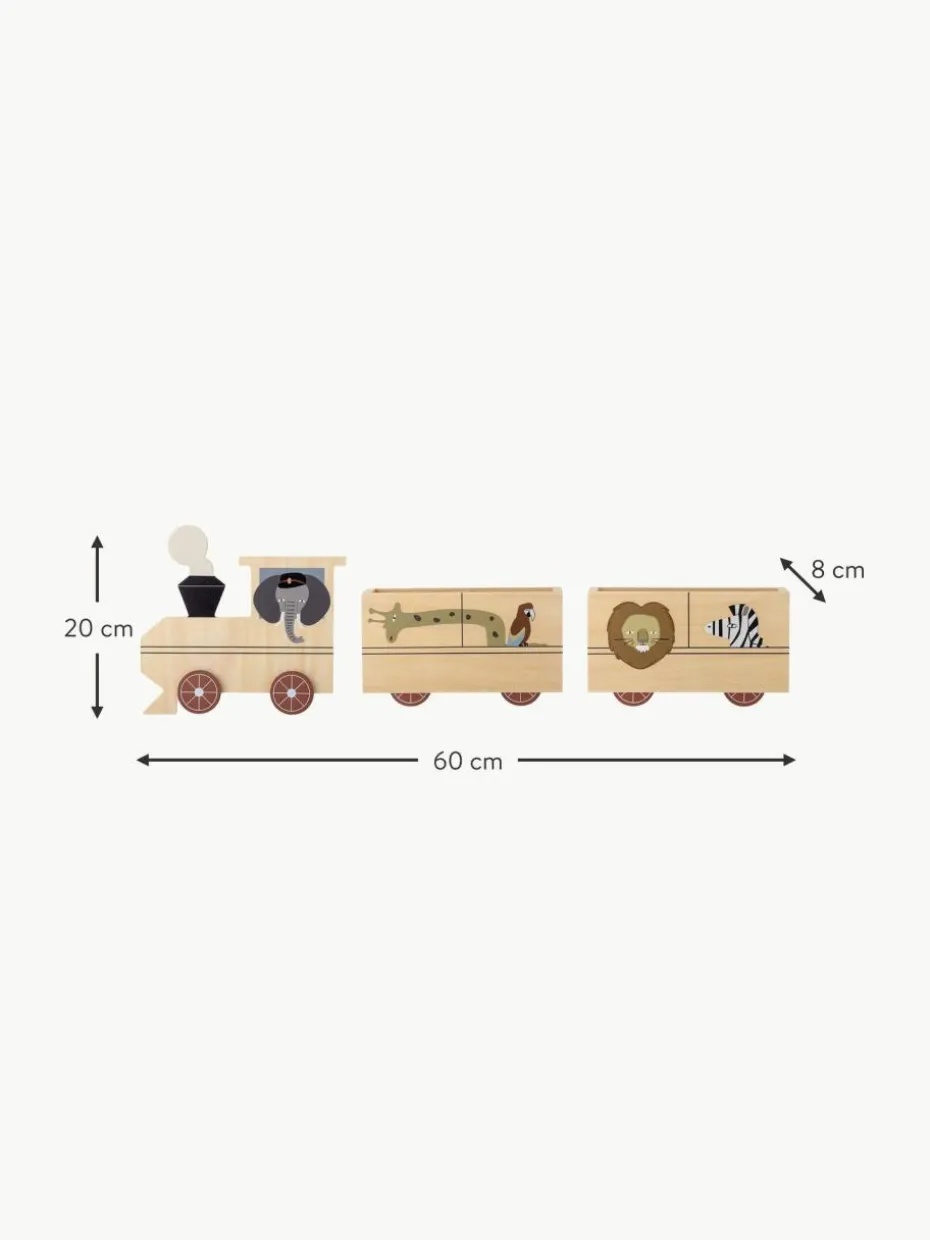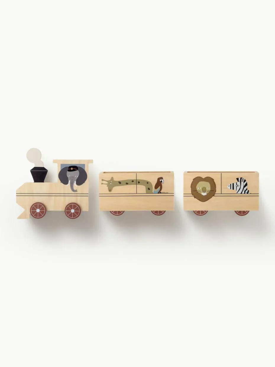 Das Regal MALLEN von Bloomingville MINI ist eine lustige und fantasievolle Möglichkeit, Bücher und kleine Gegenstände im Kinderzimmer aufzubewahren. Mit seinem einzigartigen Design, das einen Zug mit zwei Waggons voller Savannentiere darstellt, wird dieses Regal die Kleinen sicher begeistern. Verwende es als praktisches Bücherregal für ihre Lieblingsbücher oder als dekorative Aufbewahrungslösung für kleine Spielzeuge und Souvenirs. Das Regal ist sowohl dekorativ als auch funktional und verleiht jedem Kinderzimmer eine zusätzliche spaßige Note.“,“pdp_care_label“:“Die Lieferung erfolgt ohne Befestigungsmaterial.
