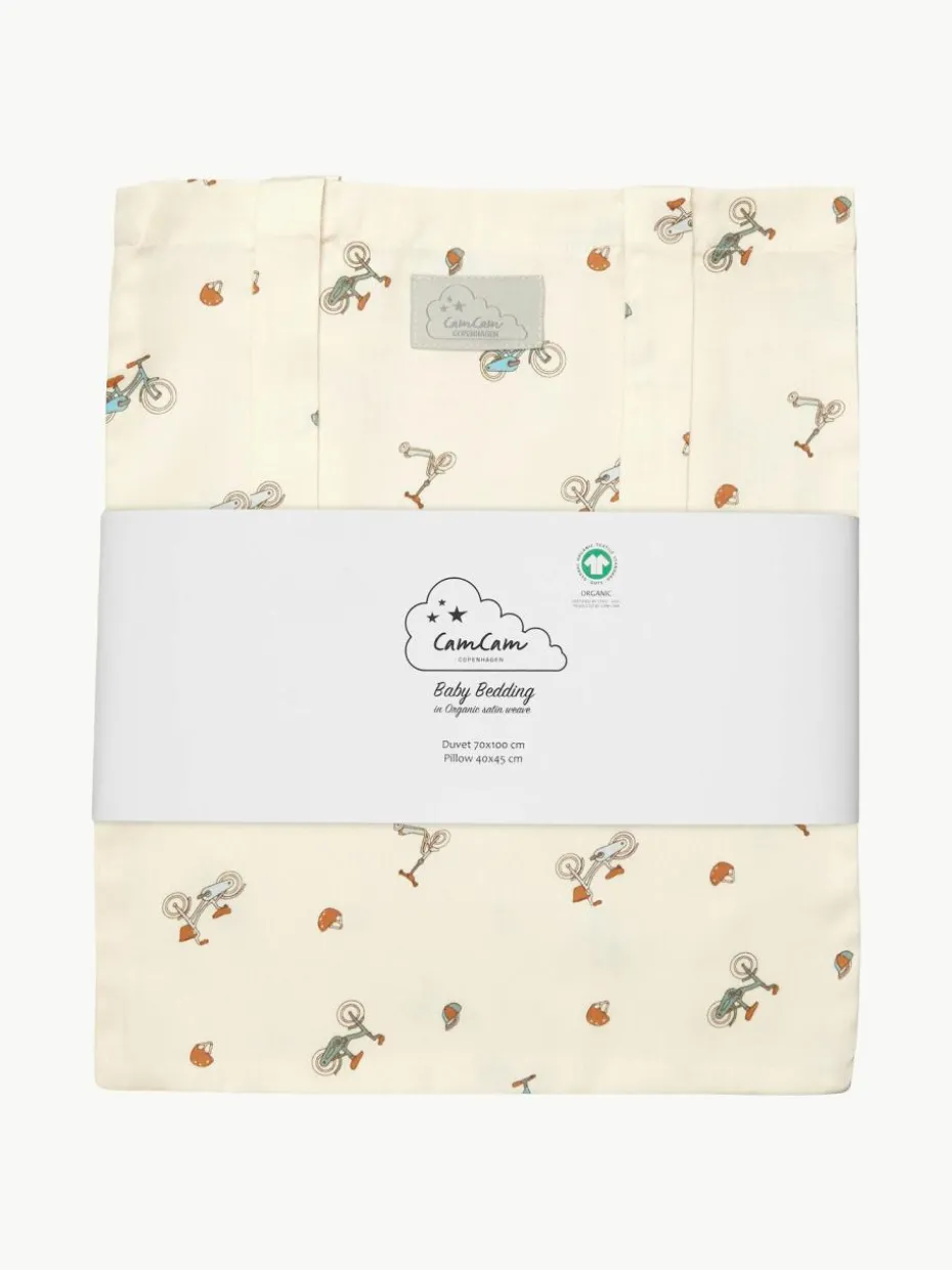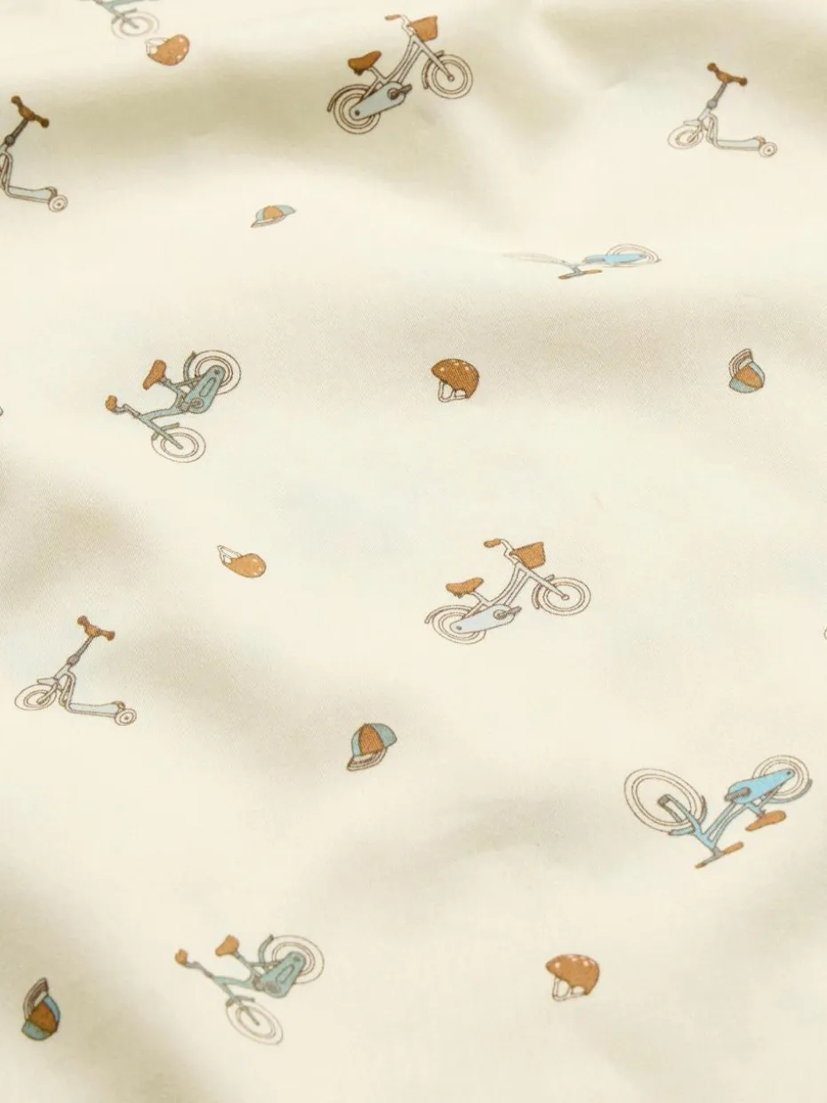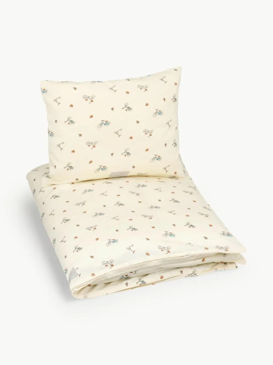 Die Kinderbettwäsche mit verspieltem Muster, bestehend aus einem Bettdeckenbezug und einem Kopfkissenbezug, verfügt über einen Reißverschluss.