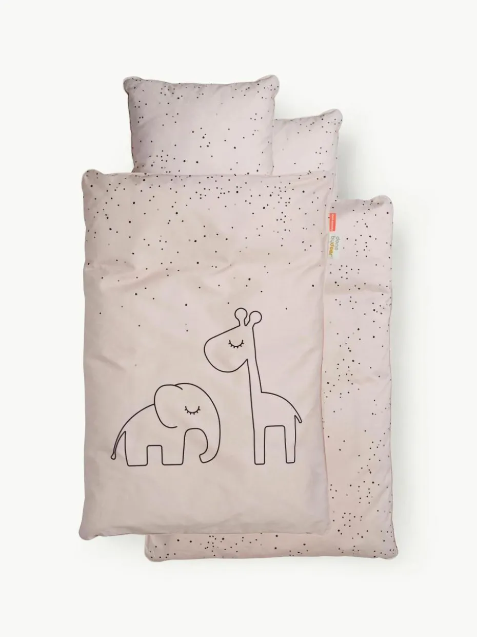 In dieser Bettwäsche lässt es sich besonders gut schlafen: Elefant und Giraffe legen schon mal ein Nickerchen ein. Die Kinderbettwäsche wurde in Europa gefertigt und ist mit versteckten Reißverschlüssen versehen.