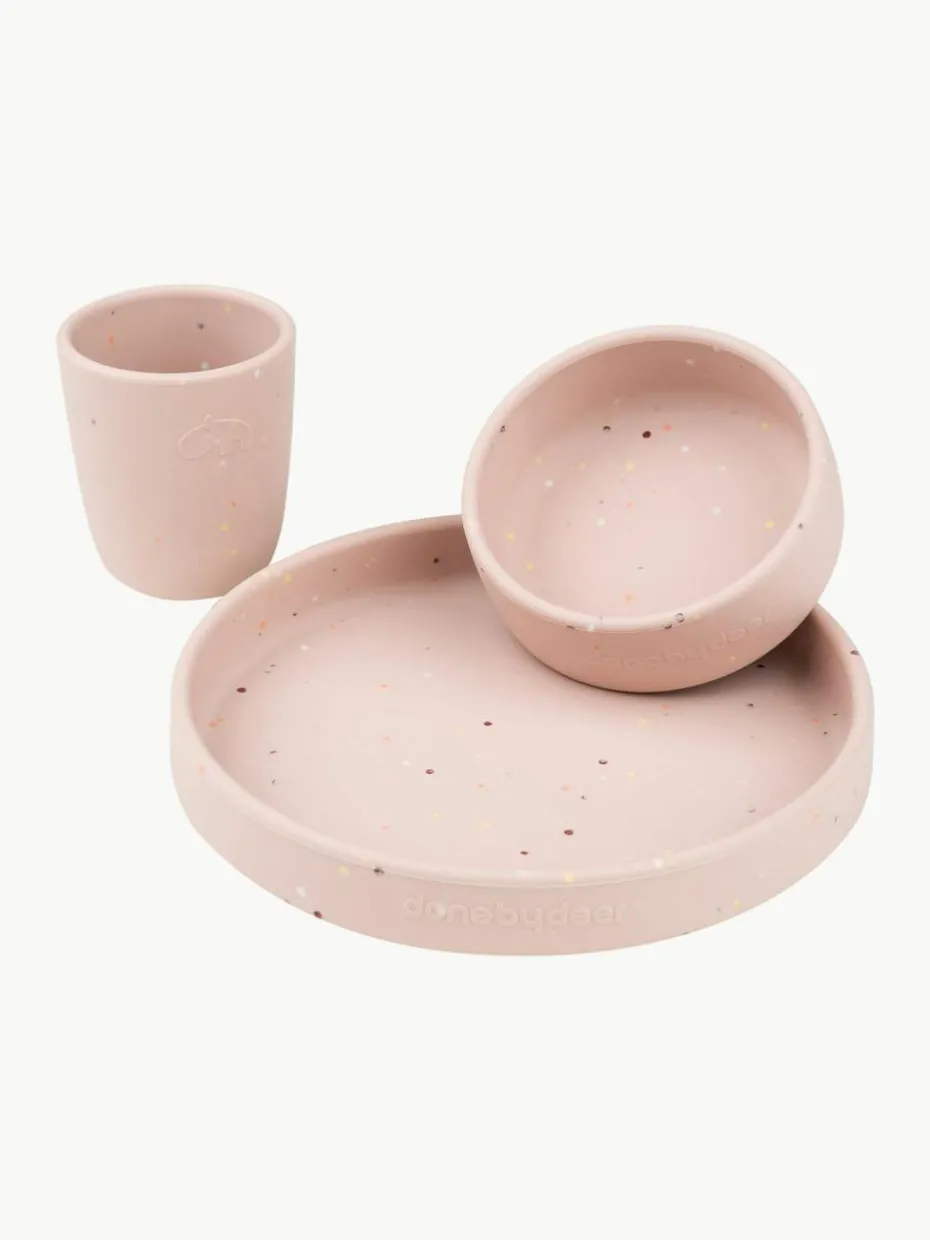 Das Silikon-Geschirrset Confetti verleiht jeder Mahlzeit Glanz. Das praktische Set aus rutschfestem und griffigem Silikon besteht aus einem Kinderteller, einer Schüssel und einem Minibecher. Die abgerundeten Innenkanten erleichtern das Aufnehmen von Lebensmitteln.“,“pdp_care_label“:“Spülmaschinengeeignet bis zu 100°C