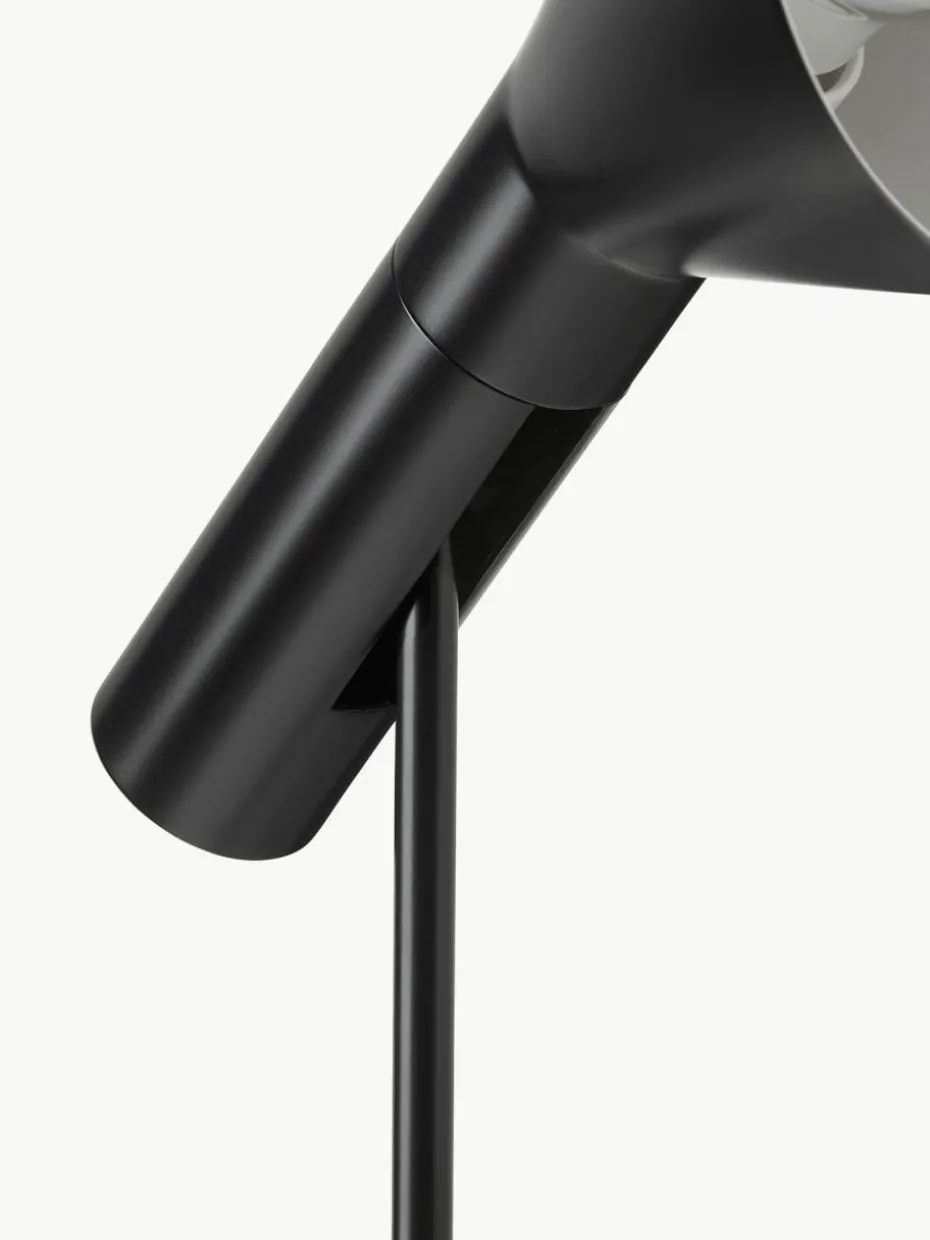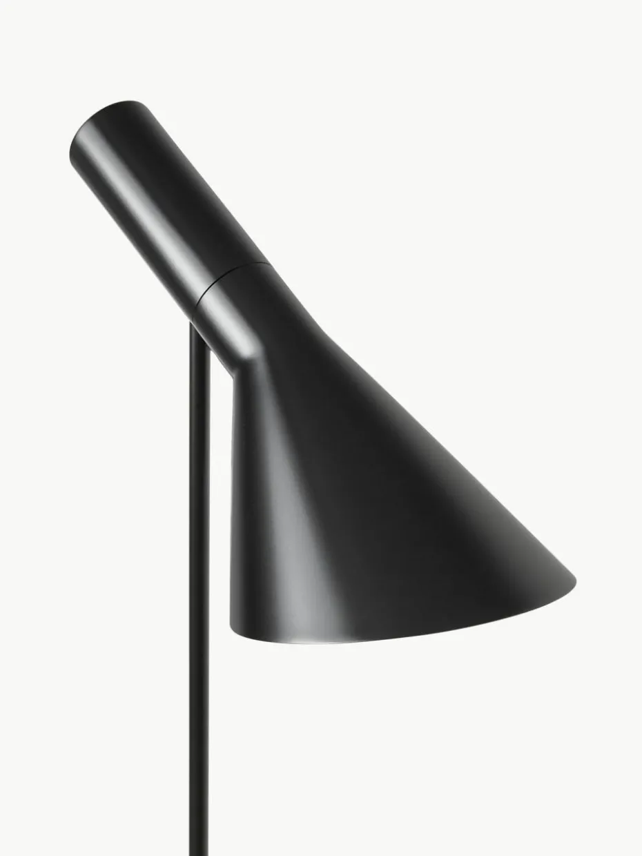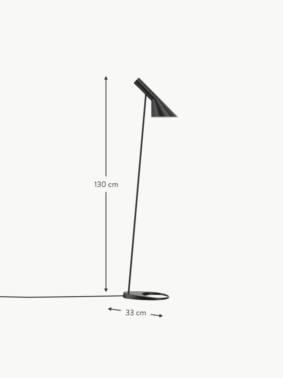 Die AJ Leuchte wurde 1957 für das SAS Royal Hotel in Kopenhagen entworfen und ist ein legendäres Design von Arne Jacobsen. Das Design ist grafisch und stilrein in seinem Ausdruck, was ihm einen zeitlosen Look verleiht. Die AJ Stehleuchte sorgt für ein nach unten gerichtetes Licht. Die Neigung des Schirms kann individuell angepasst werden. Der Schirm ist auf der Innenseite weiß lackiert, wodurch ein gleichmäßiges, weiches Licht erzeugt wird.