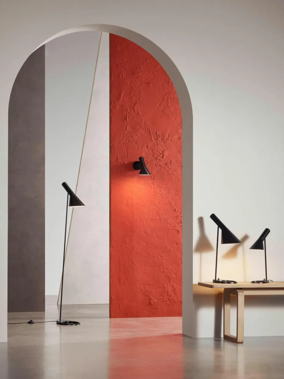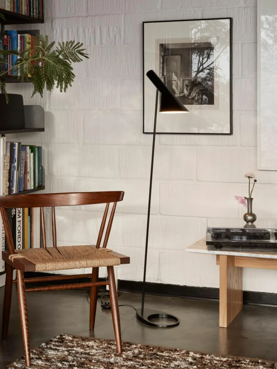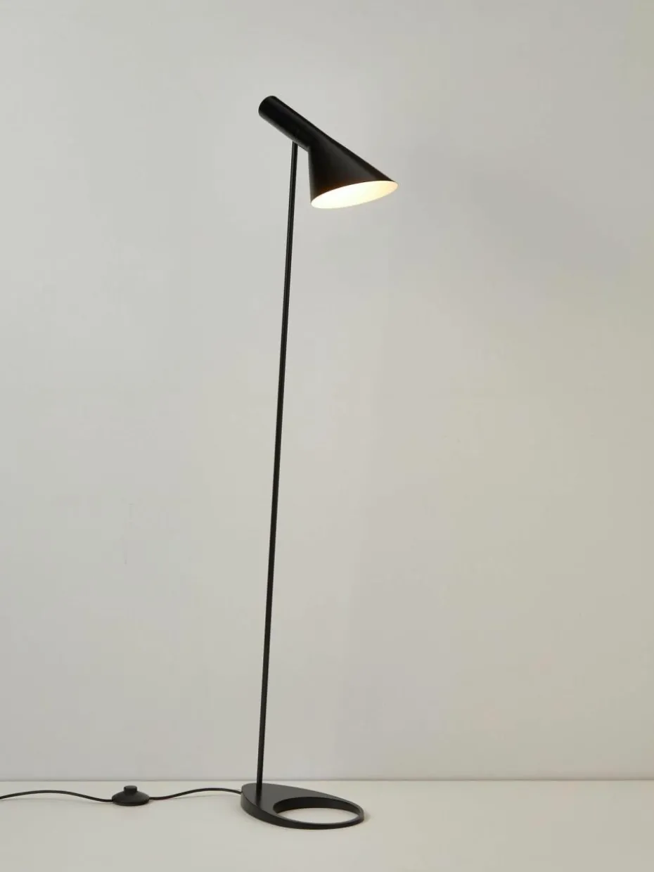 Die AJ Leuchte wurde 1957 für das SAS Royal Hotel in Kopenhagen entworfen und ist ein legendäres Design von Arne Jacobsen. Das Design ist grafisch und stilrein in seinem Ausdruck, was ihm einen zeitlosen Look verleiht. Die AJ Stehleuchte sorgt für ein nach unten gerichtetes Licht. Die Neigung des Schirms kann individuell angepasst werden. Der Schirm ist auf der Innenseite weiß lackiert, wodurch ein gleichmäßiges, weiches Licht erzeugt wird.