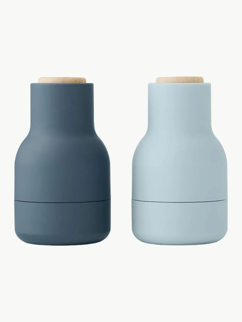 BOTTLE GRINDER ist ein zweiteiliges Set von Salz- und Pfeffermühlen, die jeweils mit einem leistungsstarken Keramikmahlwerk ausgestattet sind, das eine Vielzahl von Gewürzen mühelos mahlt. Das Set hat die Form von Flaschen, die bequem in der Hand liegen, und wird in einer Reihe von strapazierfähigen Materialien und Farben angeboten, darunter Barley, einem warmen und beruhigenden neutralen Farbton, der in jedes Küchendesign passt. Das aufrechte Design ist einfach zu bedienen, zu befüllen und zu reinigen und sorgt dafür, dass die Oberflächen frei von unerwünschten Rückständen bleiben, während die Speisen perfekt gewürzt werden.