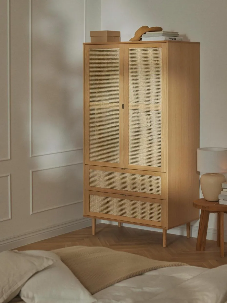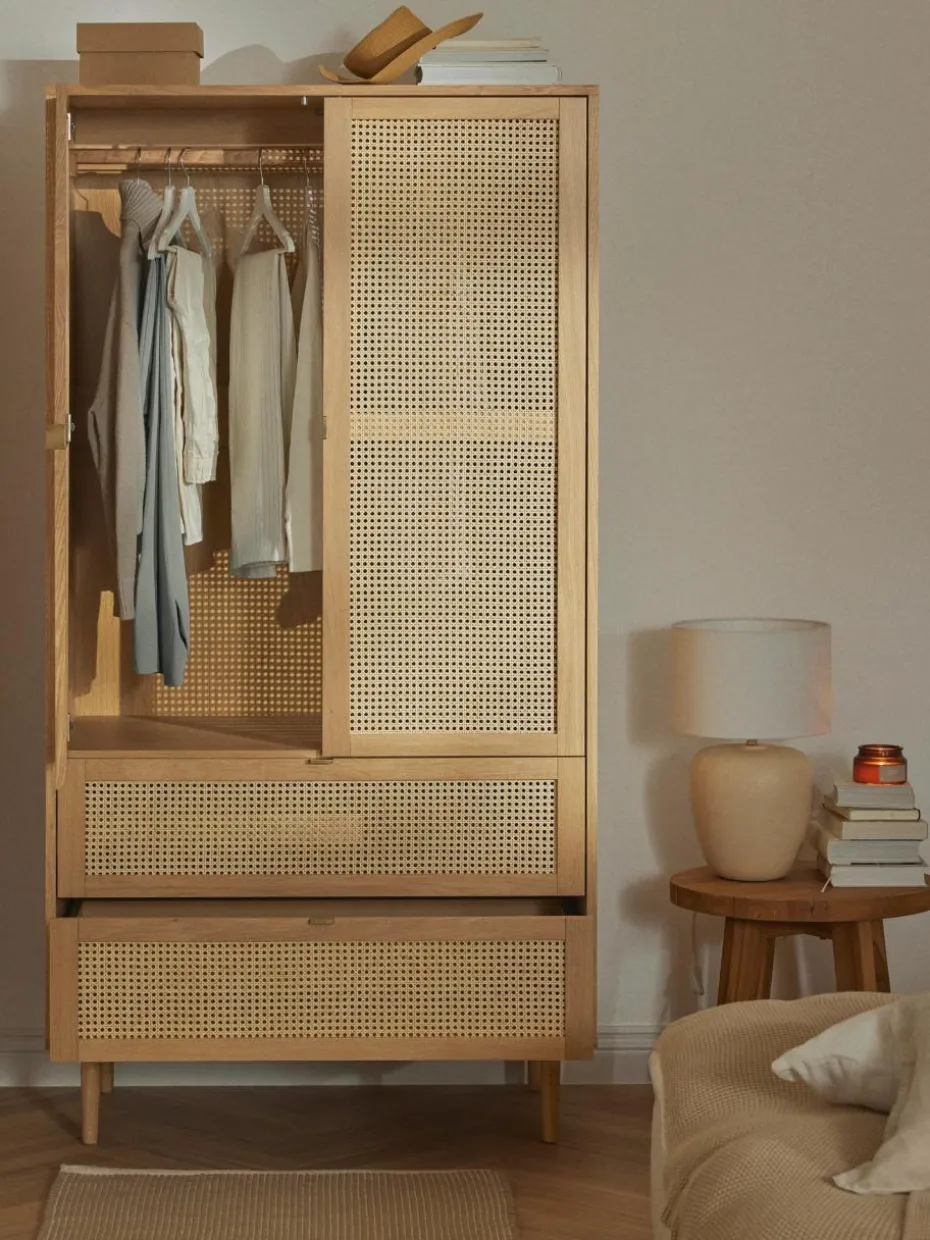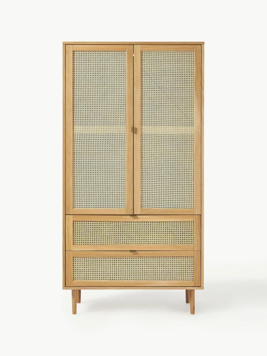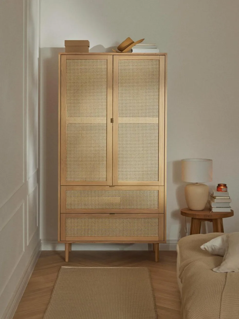Vom Wiener Kaffeehaus auf die Wishlist aller Trendsetter: Das Musthave-Material der Stunde ist Wiener Geflecht. Das typische Flechtmuster überzeugt mit einem einzigartigen Design, das sowohl zu Skandi-Looks als auch zum Boho-Stil perfekt passt. Unser Aries Kleiderschrank greift den luftig, leichten Trend auf und verpasst Deinem Schlafzimmer ein neues Interior-Highlight!“,“pdp_care_label“:“Das Produkt wird platzsparend verpackt geliefert und benötigt nach dem Auspacken als Montageaufwand den Aufbau der kompletten Produkts.