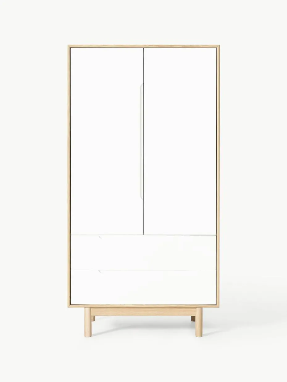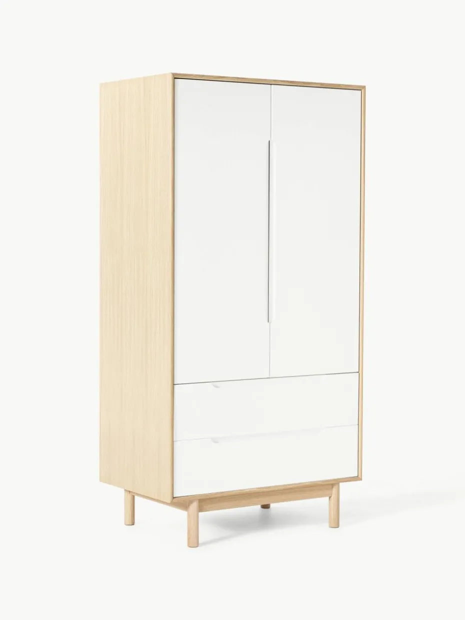 Entdecke zeitlose Eleganz und Funktionalität mit unserem Kleiderschrank CASSY im angesagten Retro-Look. CASSY bietet reichlich Stauraum für Deine Kleidung und Accessoires. Die höhenverstellbare Kleiderstange ermöglicht eine individuelle Anpassung, um den Schrank ganz nach Deinen Bedürfnissen zu gestalten. CASSY bringt mit seinem klaren Design eine gemütliche Atmosphäre mit einem Hauch von Vintage-Charme in Dein Zuhause.