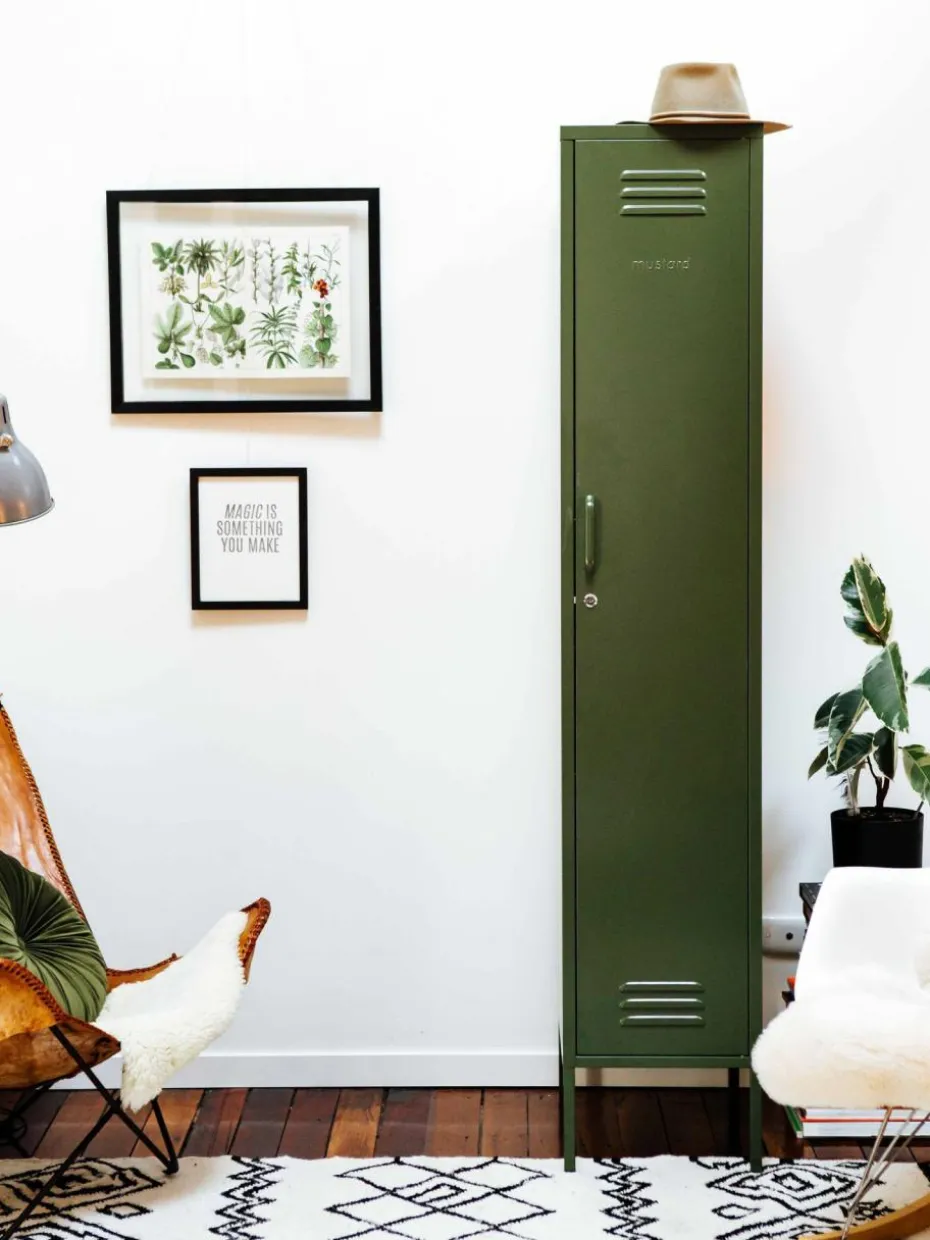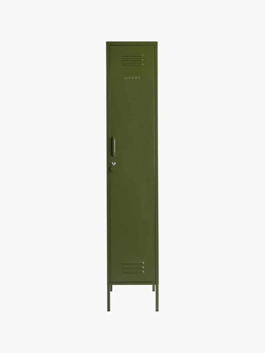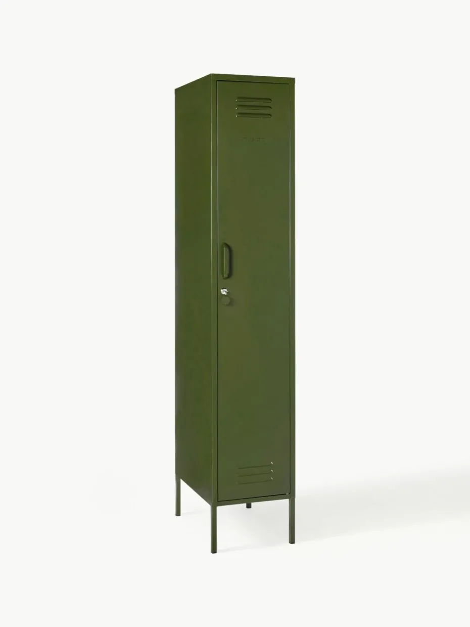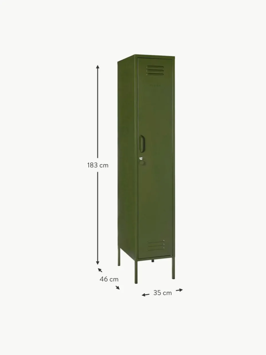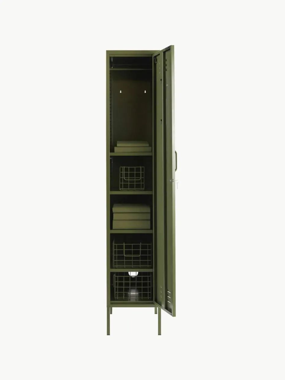 Der Kleiderschrank verfügt über eine Kleiderstange und vier höhenverstellbare Einlegeböden.