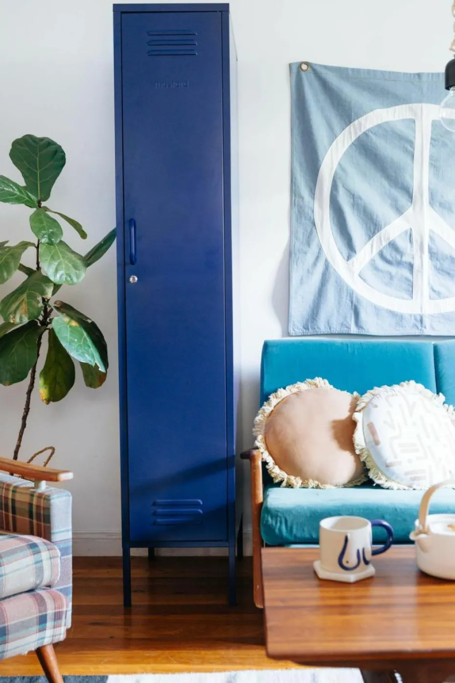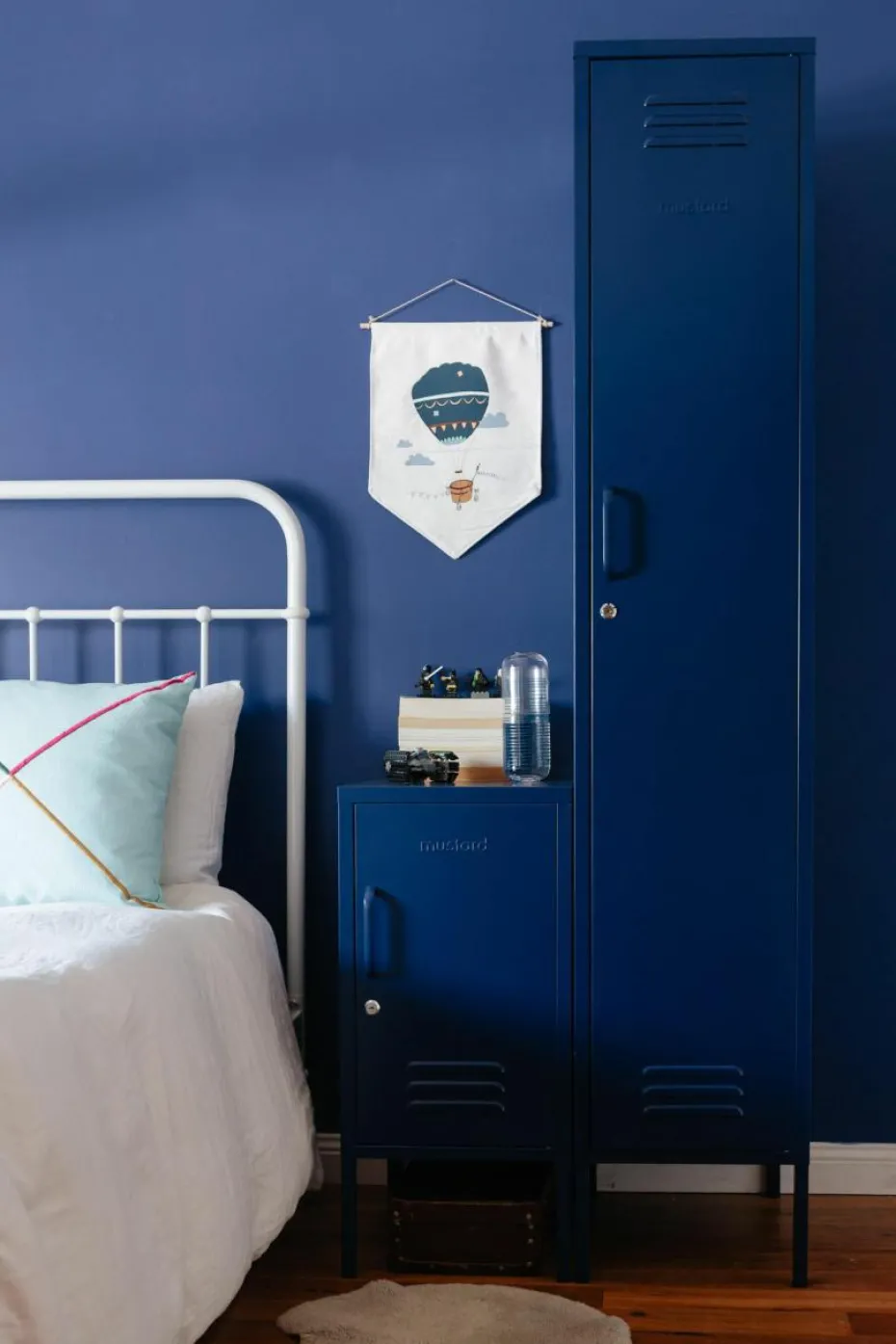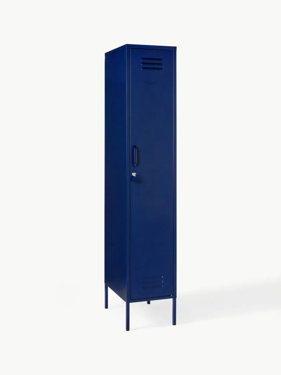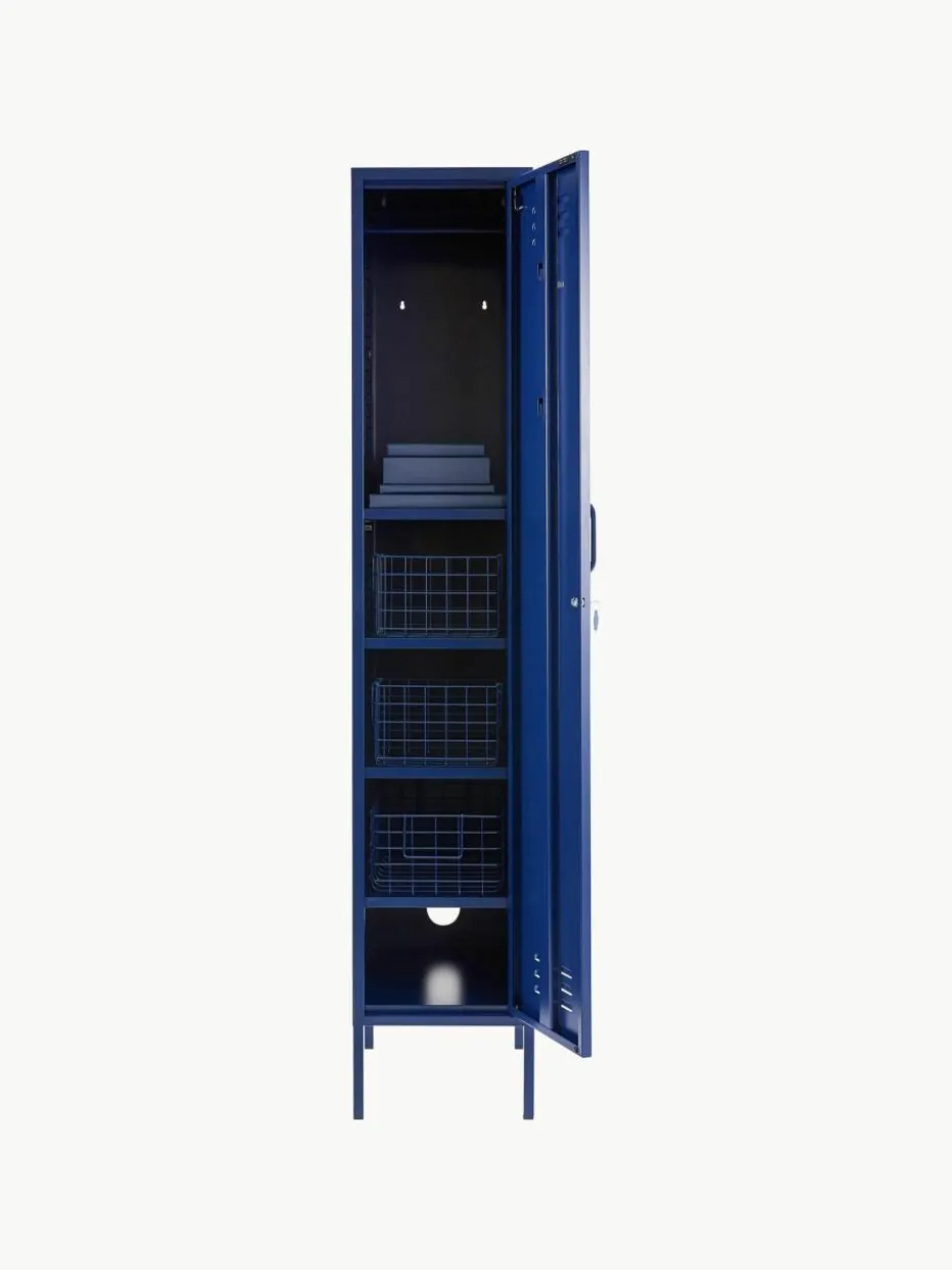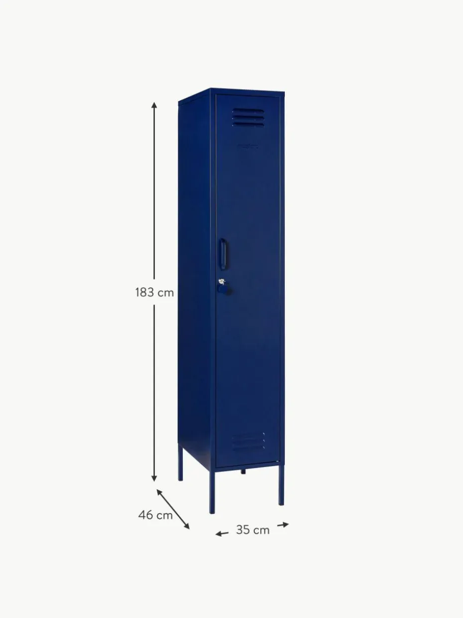 Der Kleiderschrank verfügt über eine Kleiderstange und vier höhenverstellbare Einlegeböden.