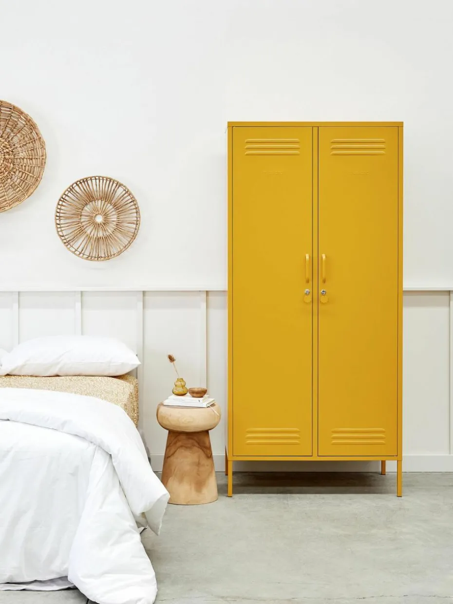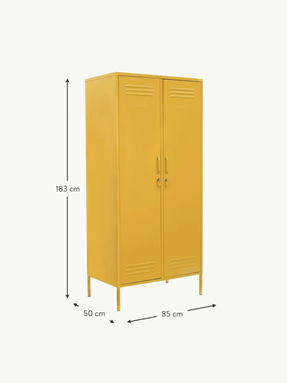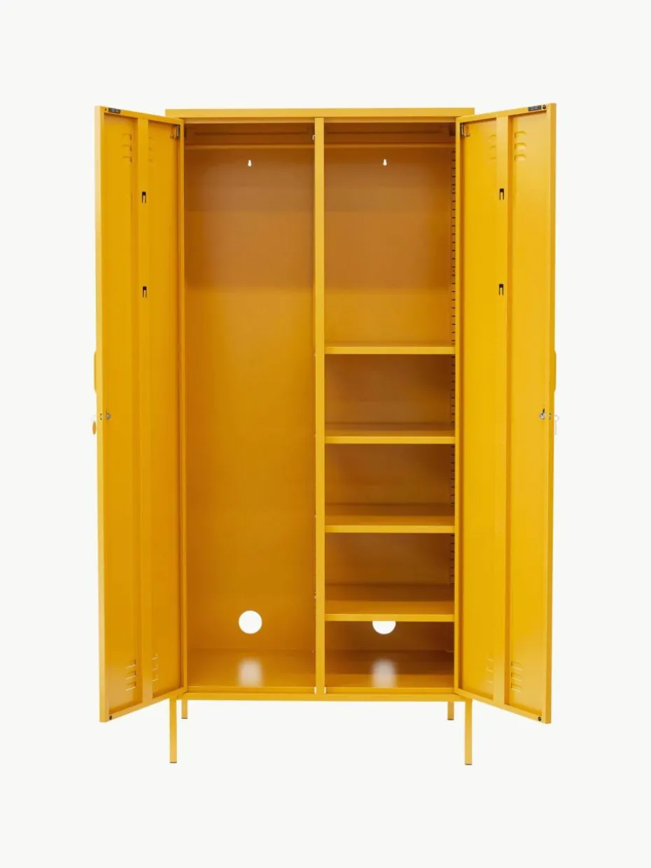 Das Produkt verfügt über zwei Kleiderstangen und fünf Einlegeböden.