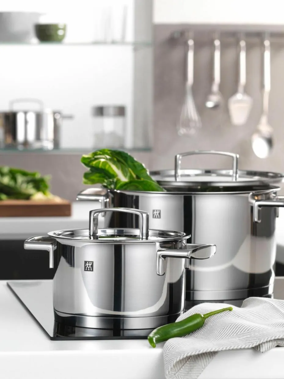 Das fünfteilige Edelstahl-Topfset aus der ZWILLING Serie Passion bietet alles, was Du brauchst, um köstliche Gerichte zuzubereiten. Das Set besteht aus einem großer Bratentopf, drei Kochtöpfen in unterschiedlichen Größen und einem Stieltopf. Besonders praktisch: die integrierte Füllskala, um Flüssigkeiten abzumessen. Ergonomisch geformte Griffe aus Edelstahlguss erleichtern die Handhabung und bleiben wegen der integrierten Stay-Cool-Funktion auch dann kühl, wenn es im Inneren des Topfes brodelt. Die Kochtöpfe sind für alle Herdarten inklusive Induktion geeignet.“,“pdp_care_label“:“Spülmaschinengeeignet