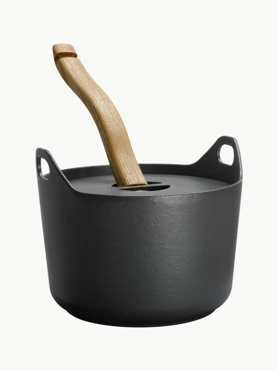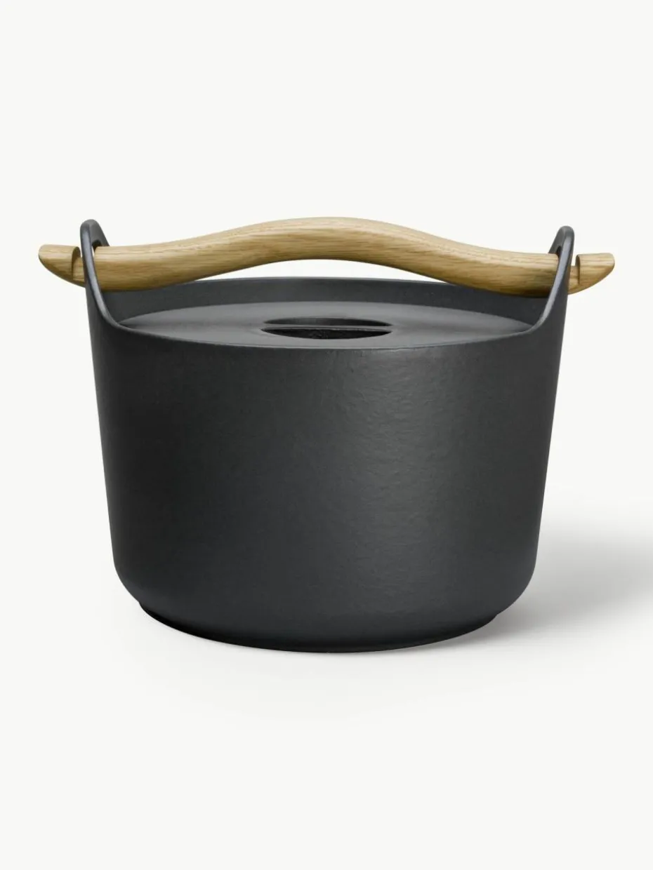 Mit seinem abnehmbaren Holzgriff und dem Korpus ist dieser Designklassiker in der Küche ebenso funktional wie auf dem Esstisch. An der emaillierten Oberfläche bleiben keine Geschmacksstoffe haften.