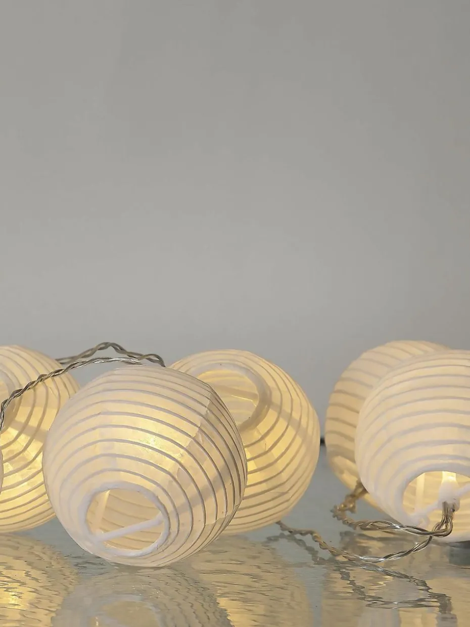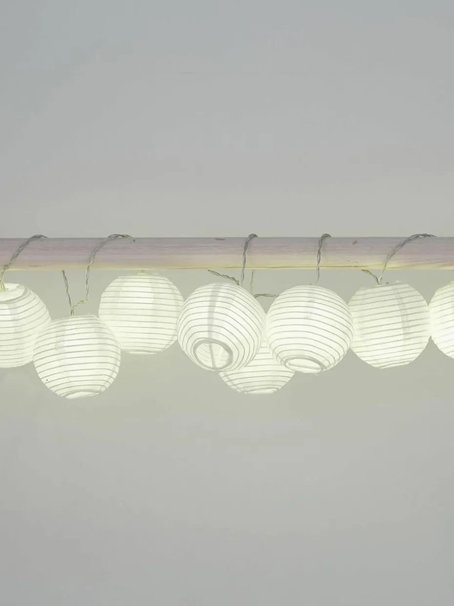 Lichterkette mit 10 Lampions, zum Anschluss an eine Steckdose. Die Lichterkette leuchtet warmweiß.“,“pdp_care_label“:“Diese Lichterkette ist nur für den Innenbereich und überdachten Außenbereich geeignet.