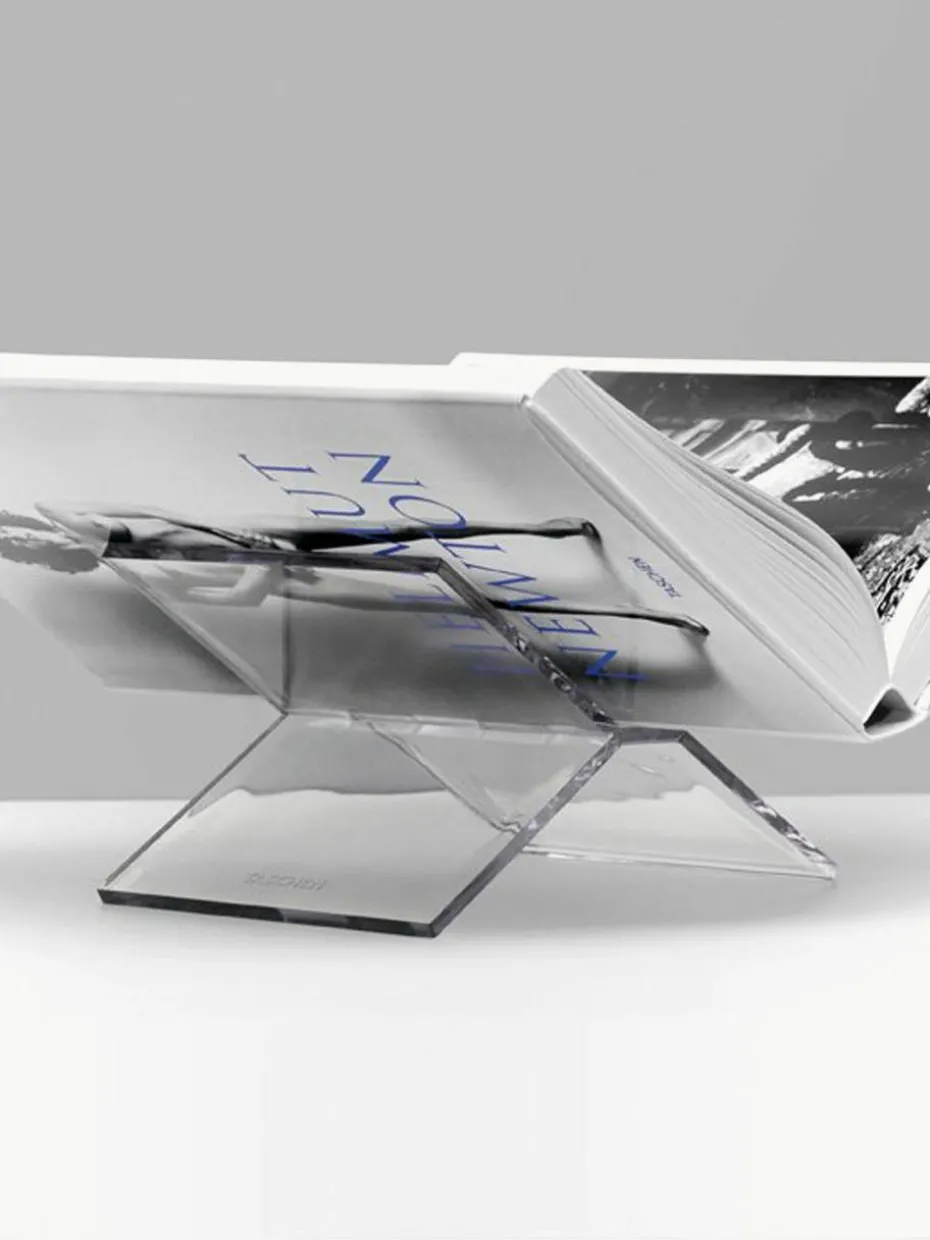 Der Leseständer Crystal nimmt es auch mit XL-Bänden auf und lässt sich für Transport oder Aufbewahrung zusammenklappen. Die perfekte Art, Deine Lieblingsbücher auf den Sockel zu heben!