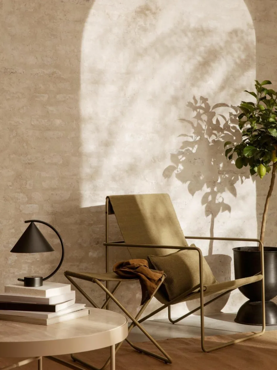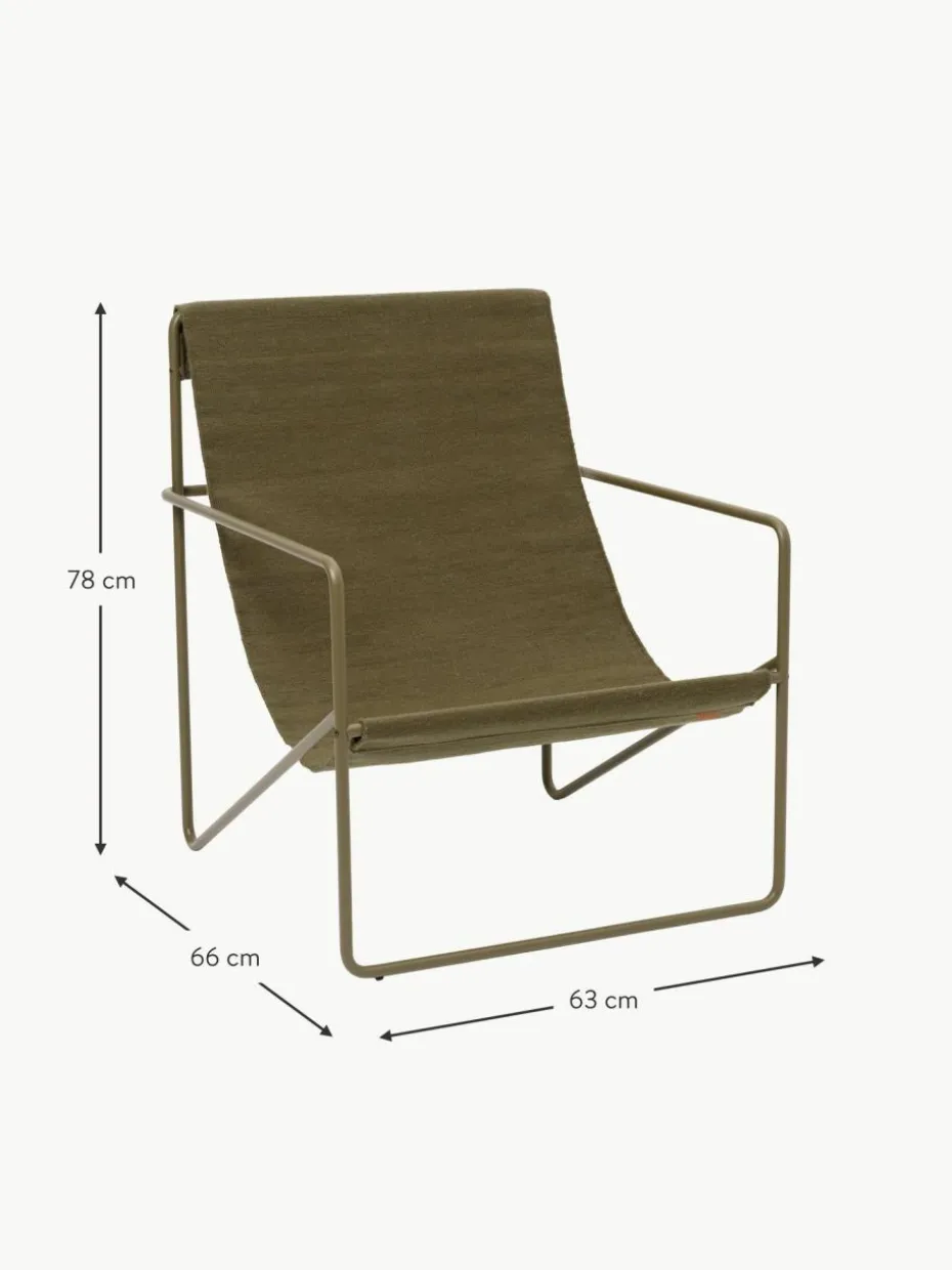 Der Desert Loungesessel ist ein modernistischer Stuhl mit einem anmutigen Profil. Er besteht aus einem röhrenförmigen Gestell mit einem austauschbaren gewebten Sitz, der vollständig aus recyceltem, zu PET-Garnen gesponnenen Kunststoff besteht.